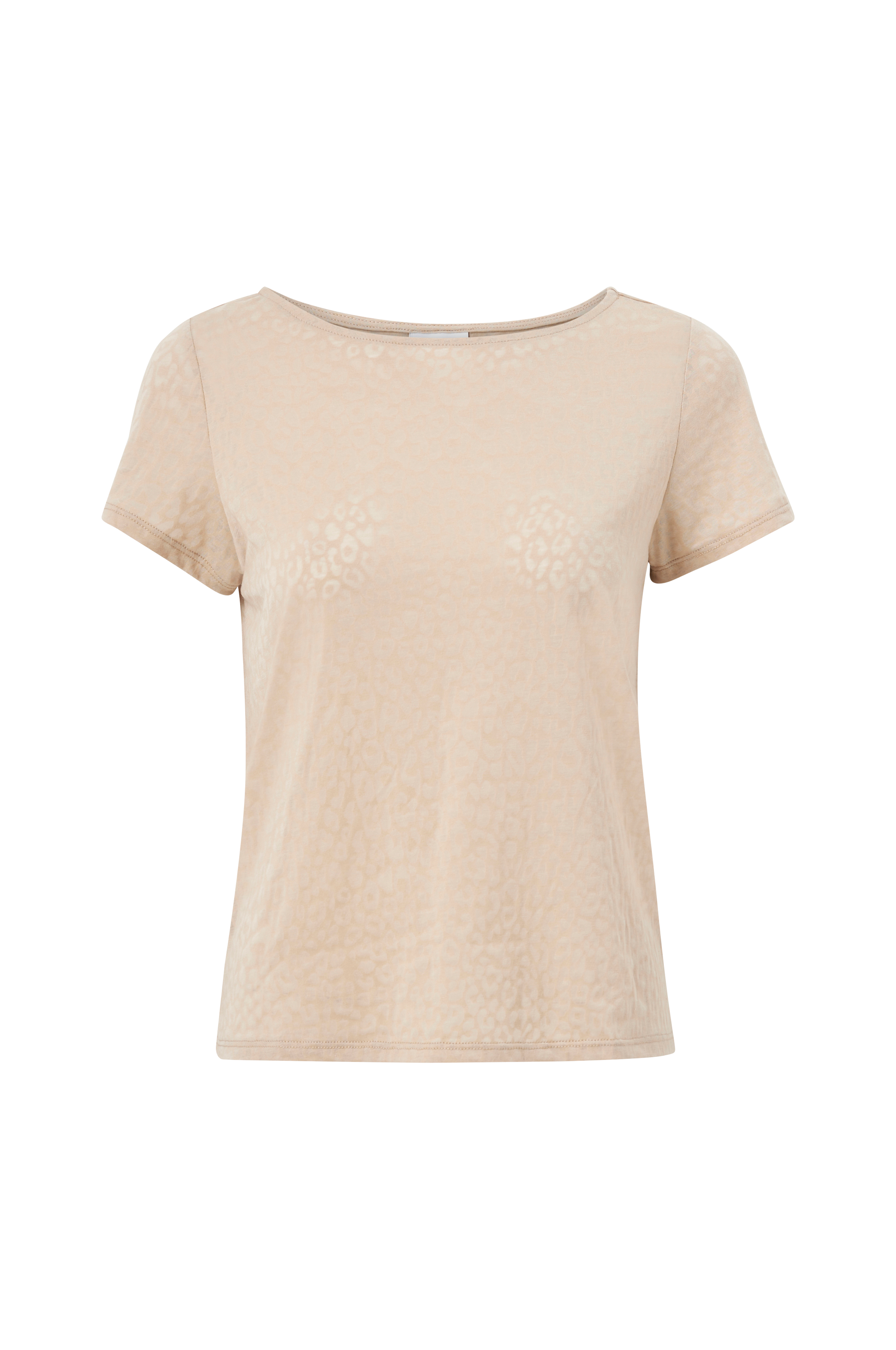 Kortärmad topp i mjuk trikå med burnout-mönster. Rund halsringning.