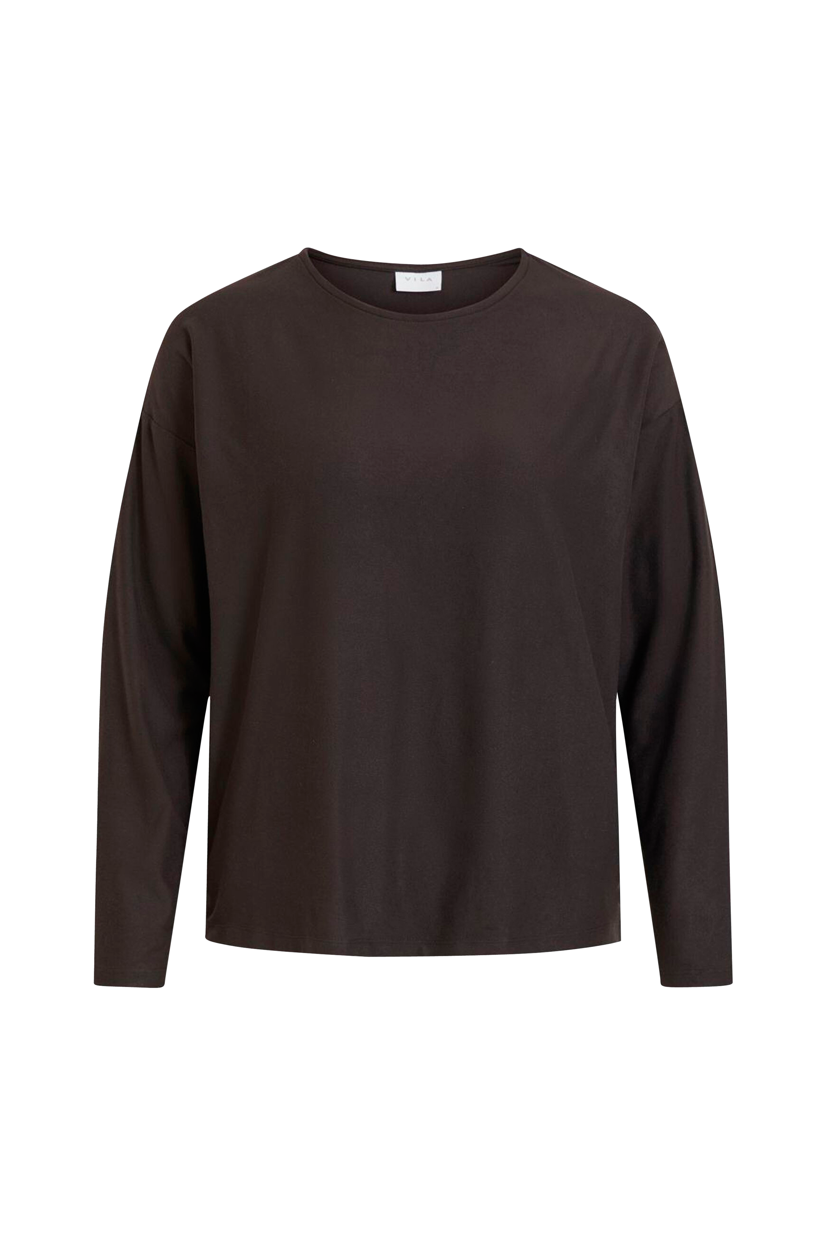 Topp viMemis L/S Top från Vila i trikå med mjuk, borstad utsida. Ledig modell med rund hals och nedhasade axlar.
