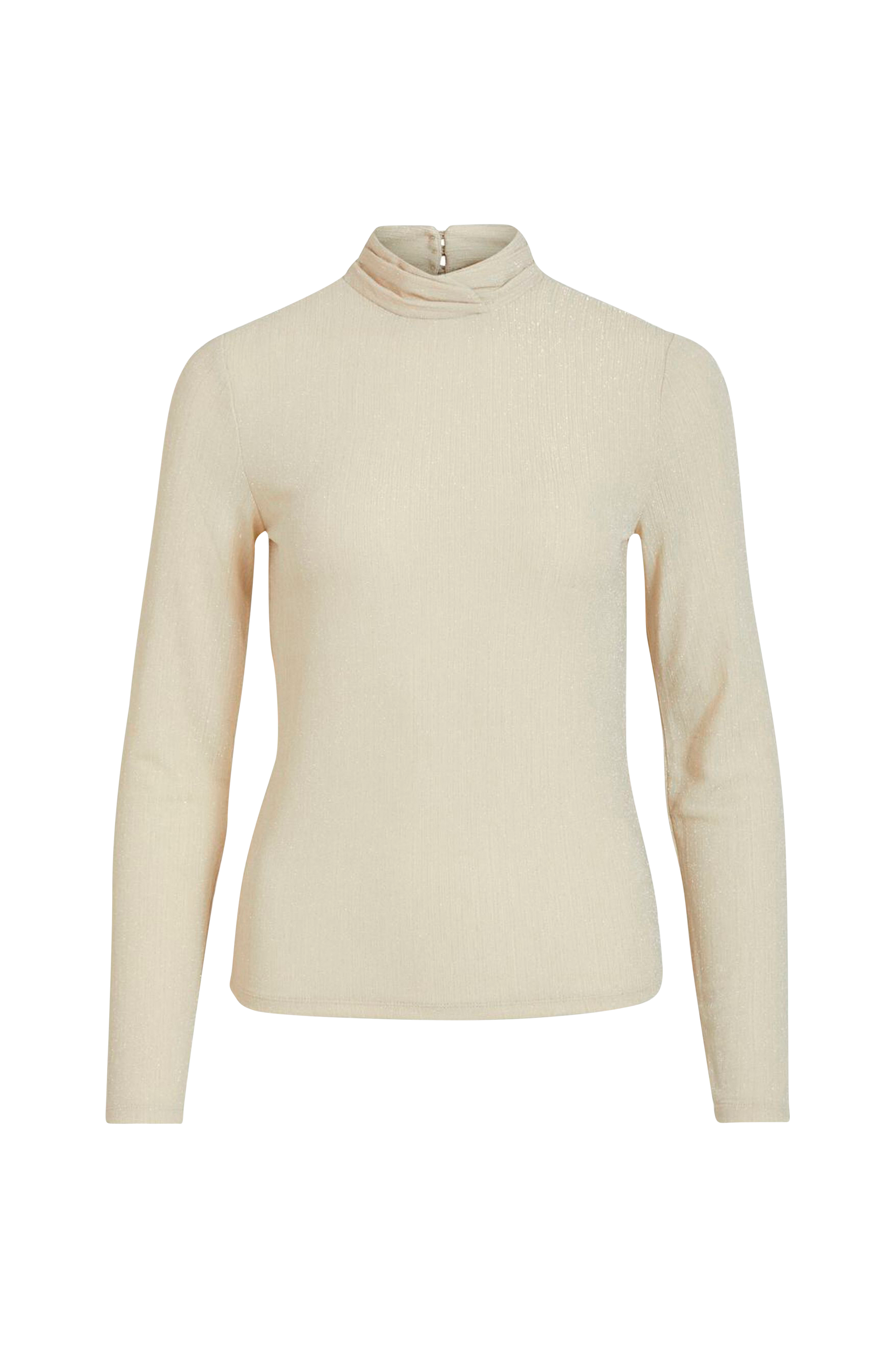 Topp viShinni L/S Glitter Top från Vila i glittrig trikå. Veckad ståkrage med sprund och klädda knappar bak.
