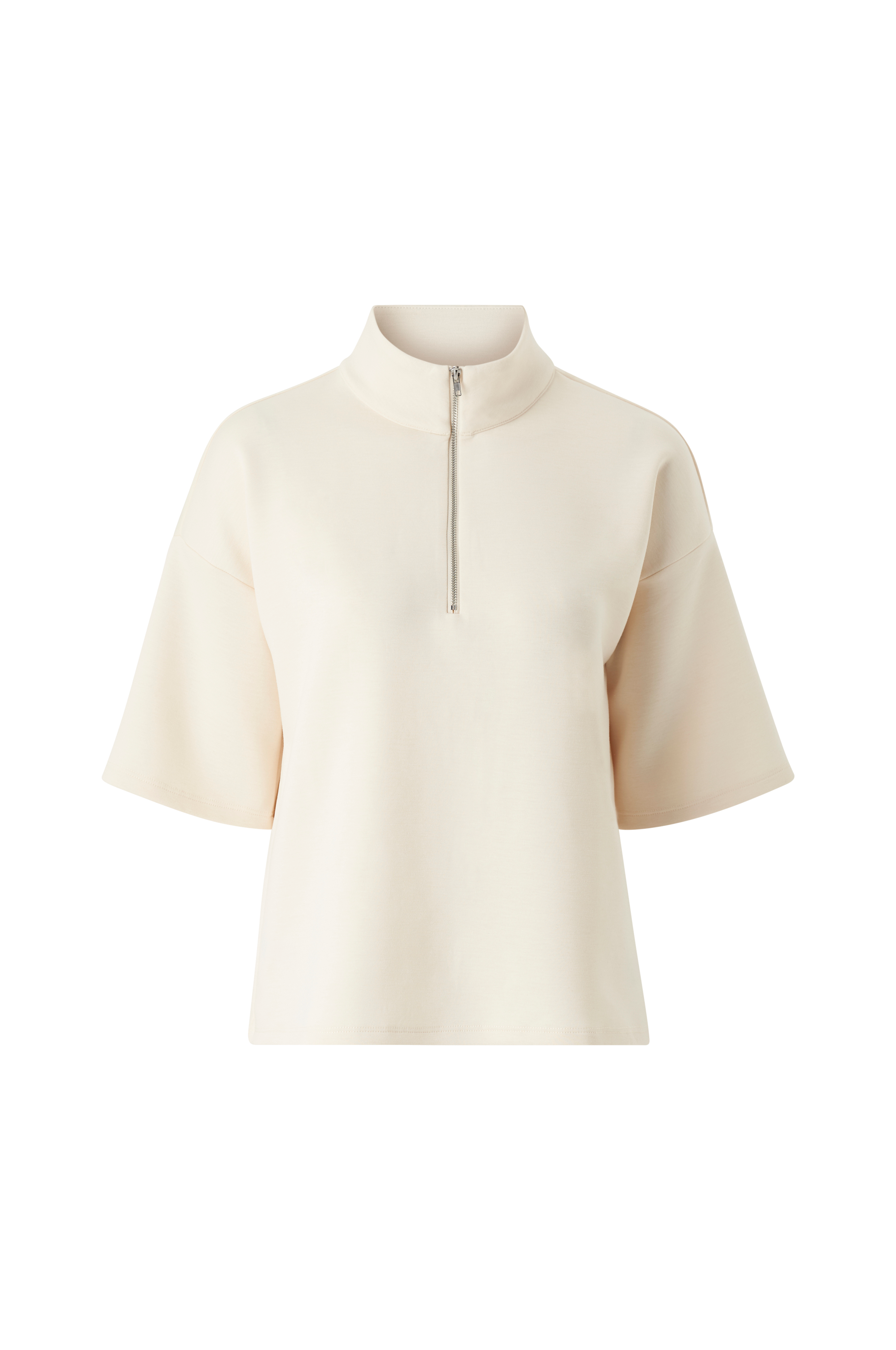 • Rak modell i sweatshirtkvalitet• Hög krage med dragkedja• Nerhasad axel med kort ärm