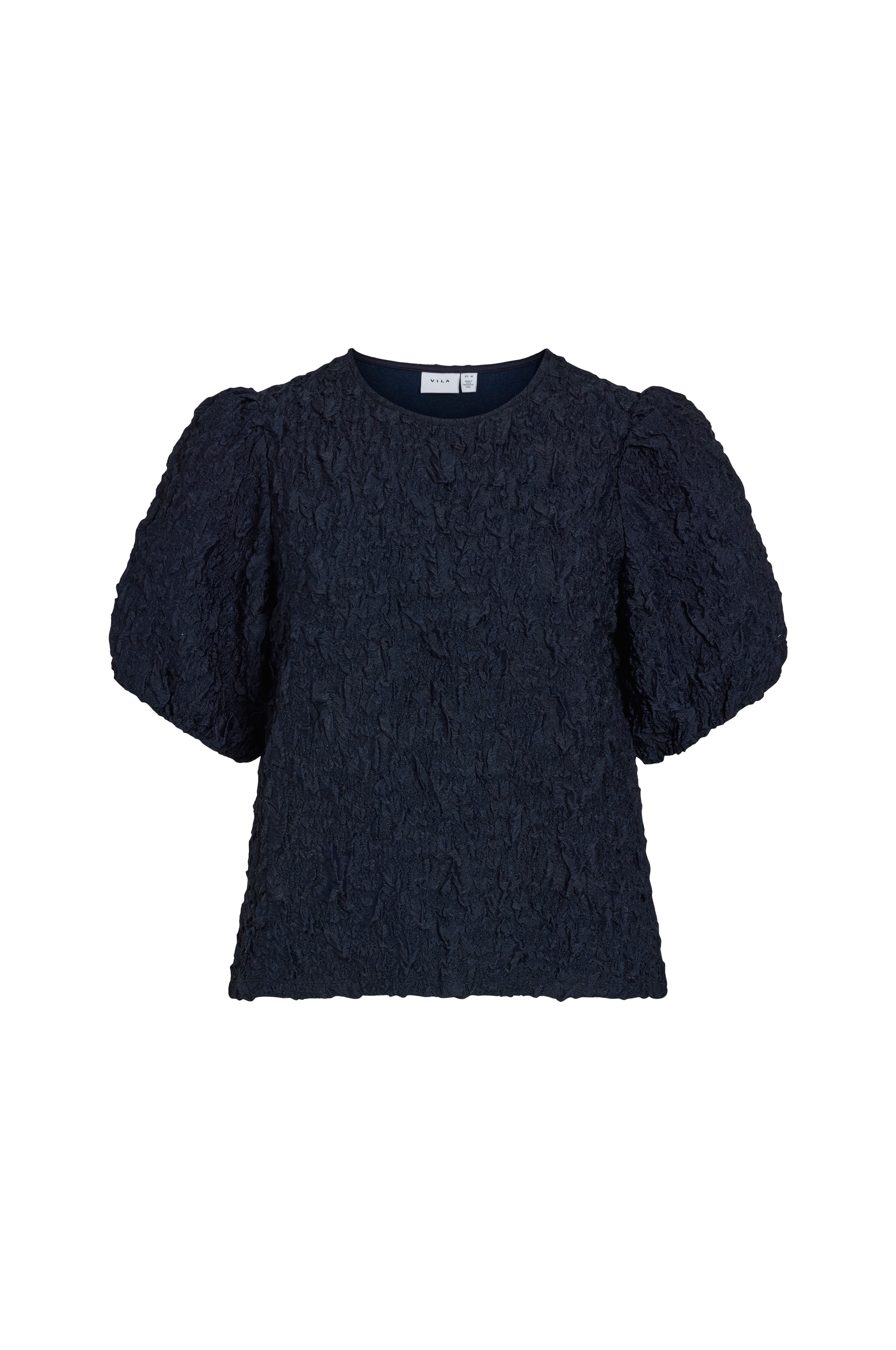• Ledig, strukturmönstrad modell• Rund hals• Kort puffärm med resår i ärmsluten