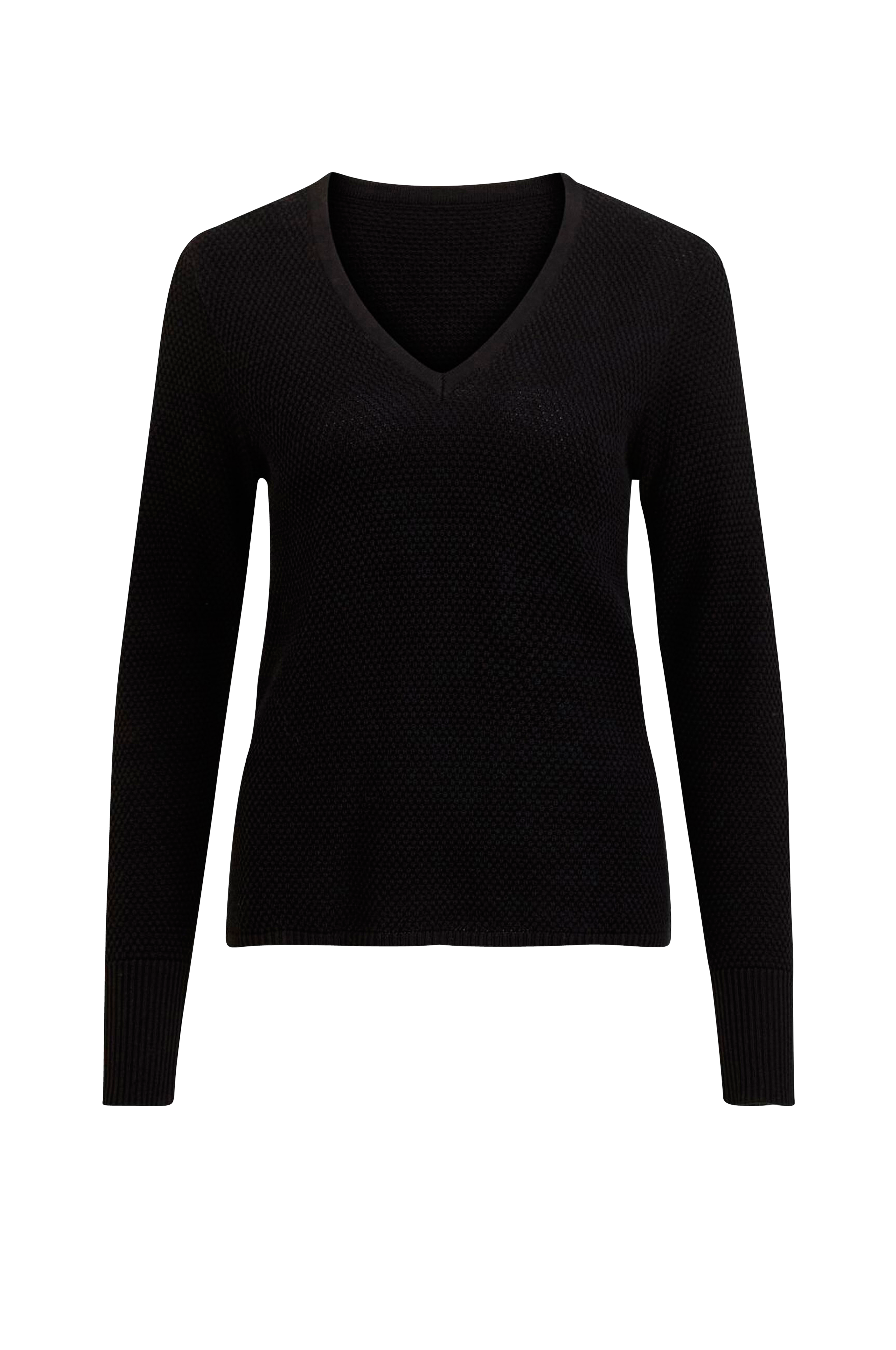 • V-ringning• Rak passform• Ribbstickade ärmslut• Stickad, våffelmönstrad kvalitet