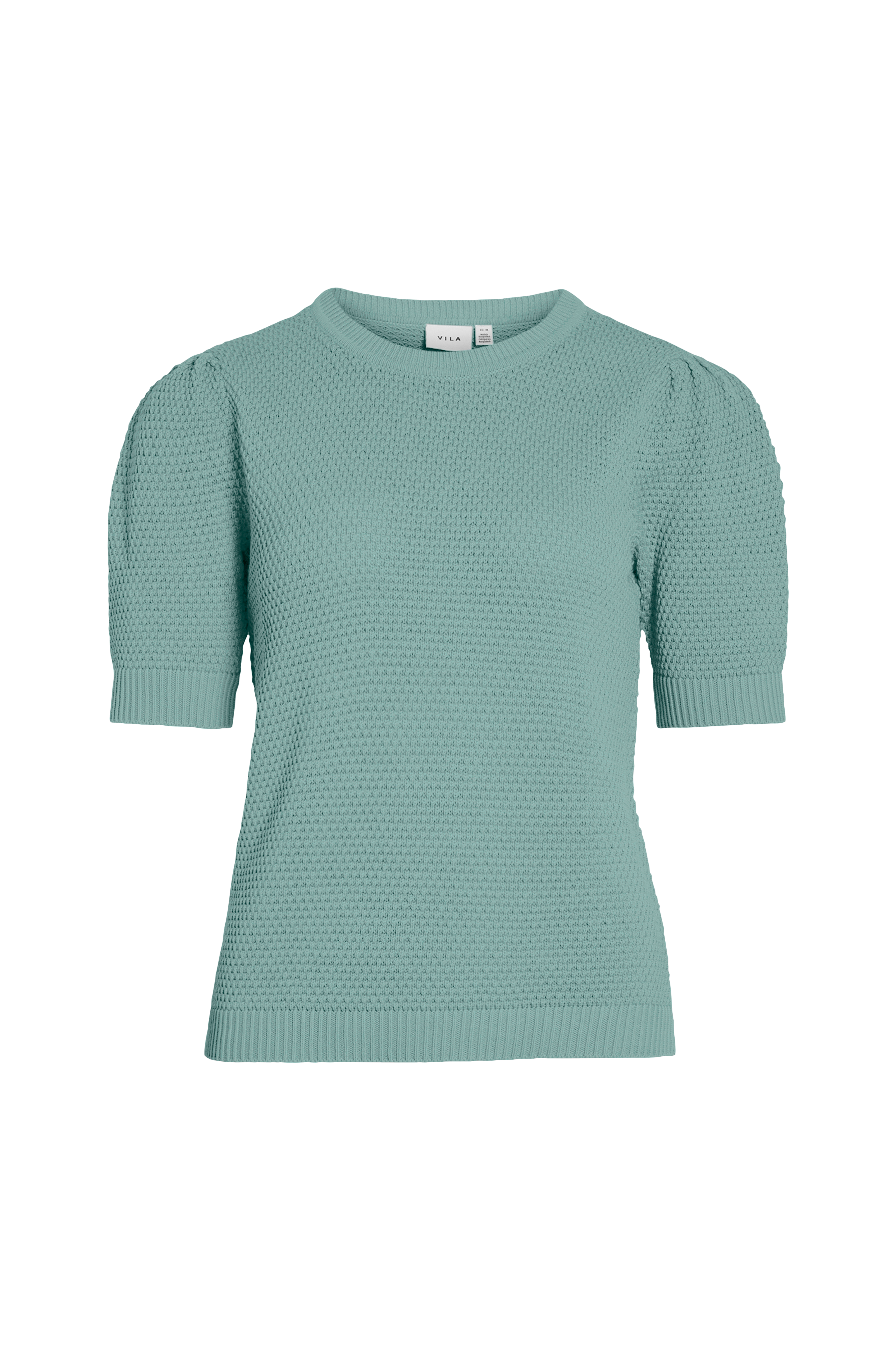 • Mönsterstickad tröja i bomull• Kort puffärm med rynk vid axlarna• Rund halsringning• Ribbstickning i ärmsluten och nedtill