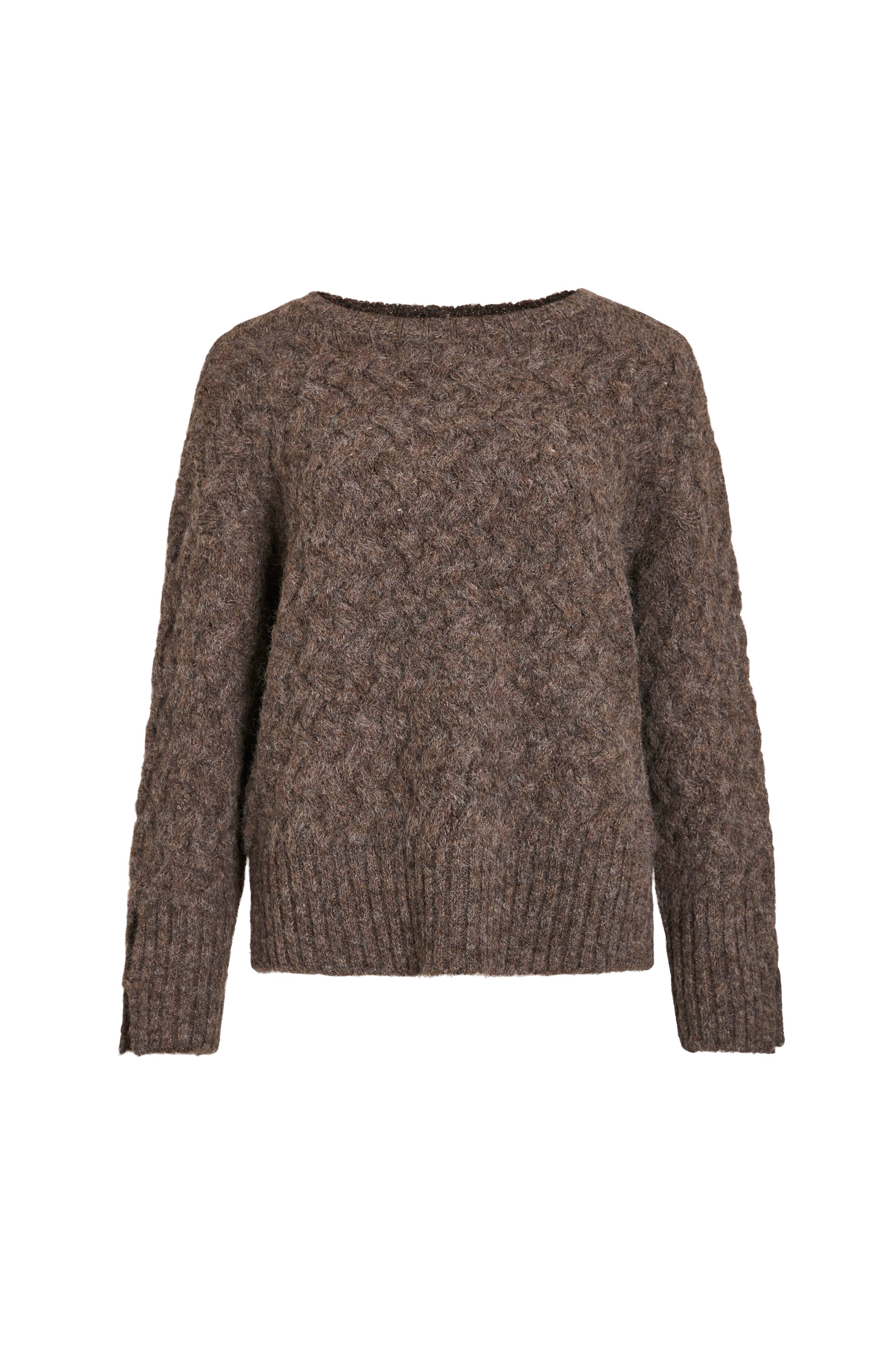 • Kabelstickad tröja med ribbad båthals