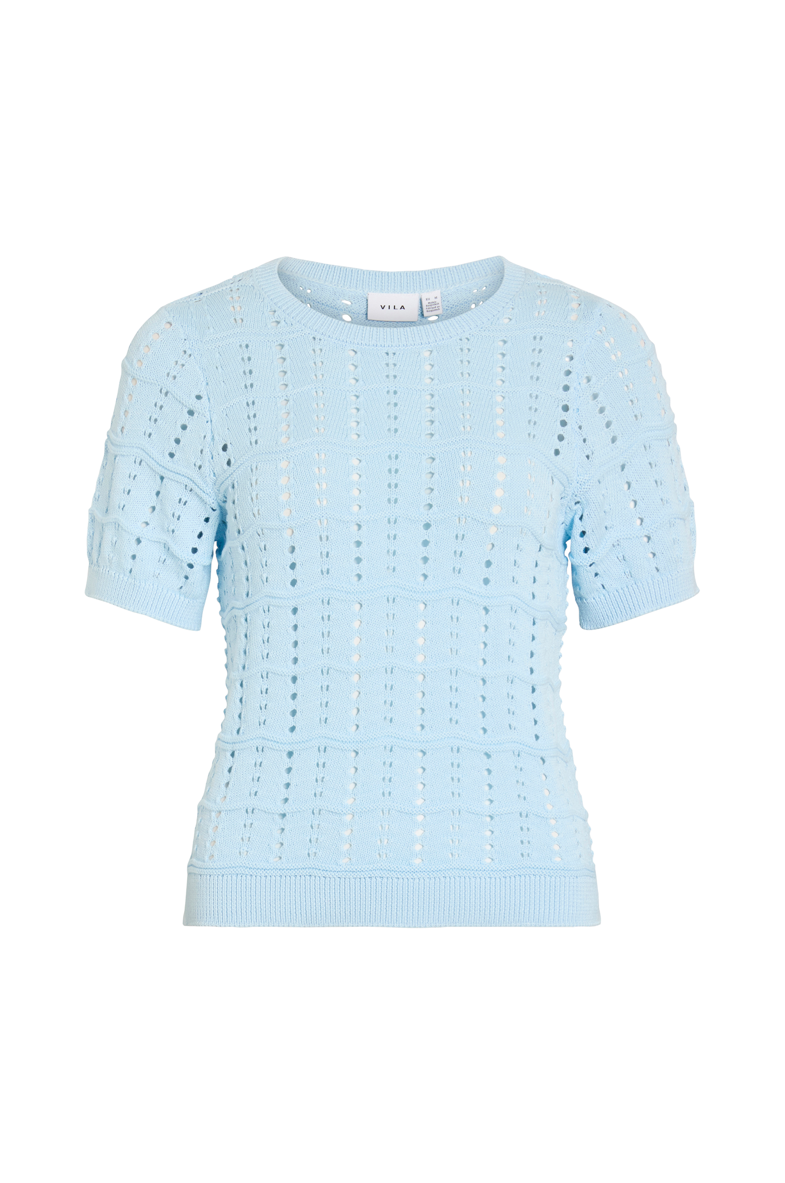 • Glesstickad tröja med korta ärmar• Rund, ribbad halsringning• Ribbstickning i ärmsluten och i nederkanten
