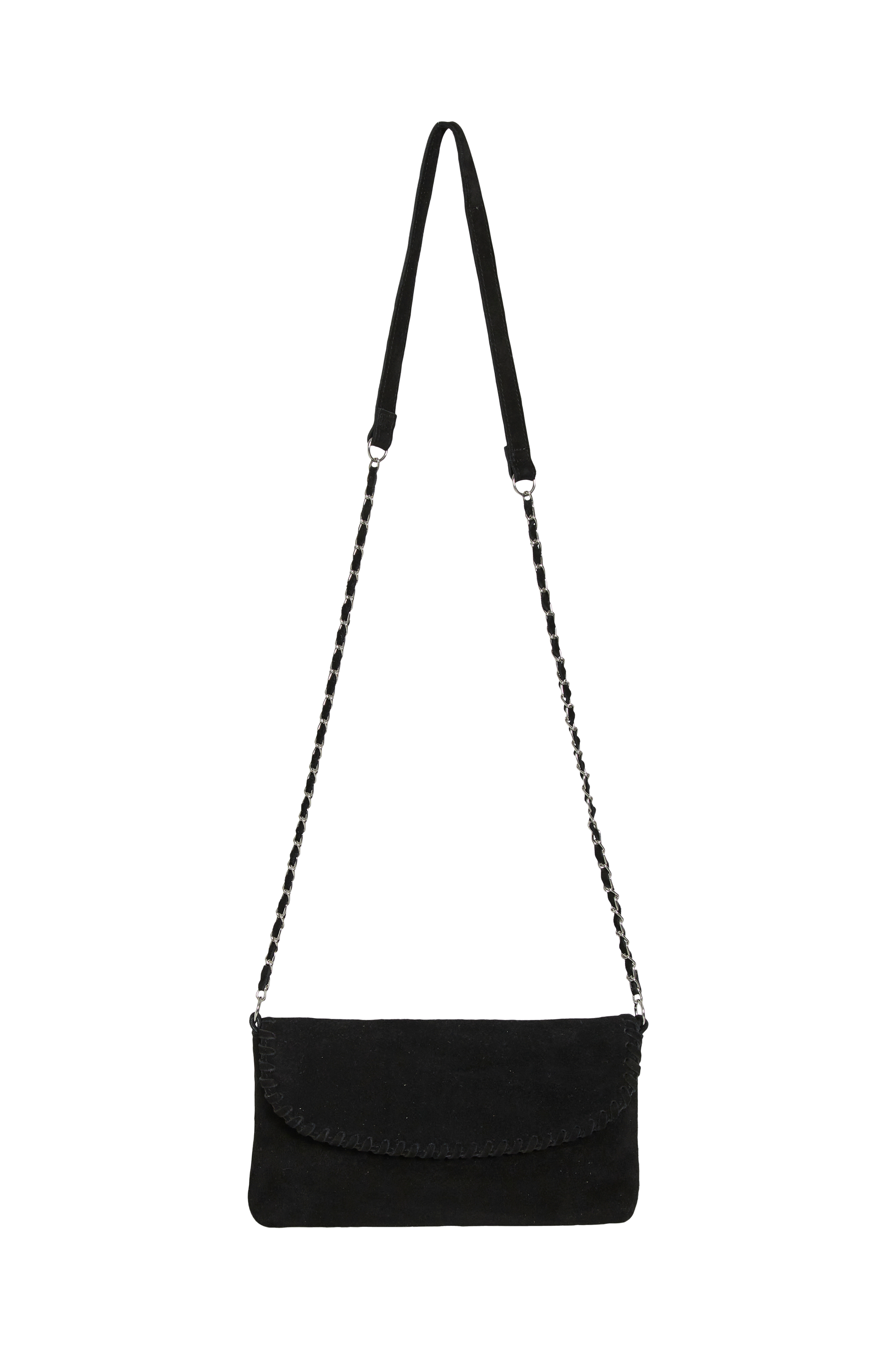 • Väska i mocka• Lock med dekorativa sömmar i läder längs kanten• Magnetstängning• Invändig ficka med dragkedja• Textilfoder• Justerbar axelrem med metallkedja• Mått: B 27 x H 16 x D 4 cm