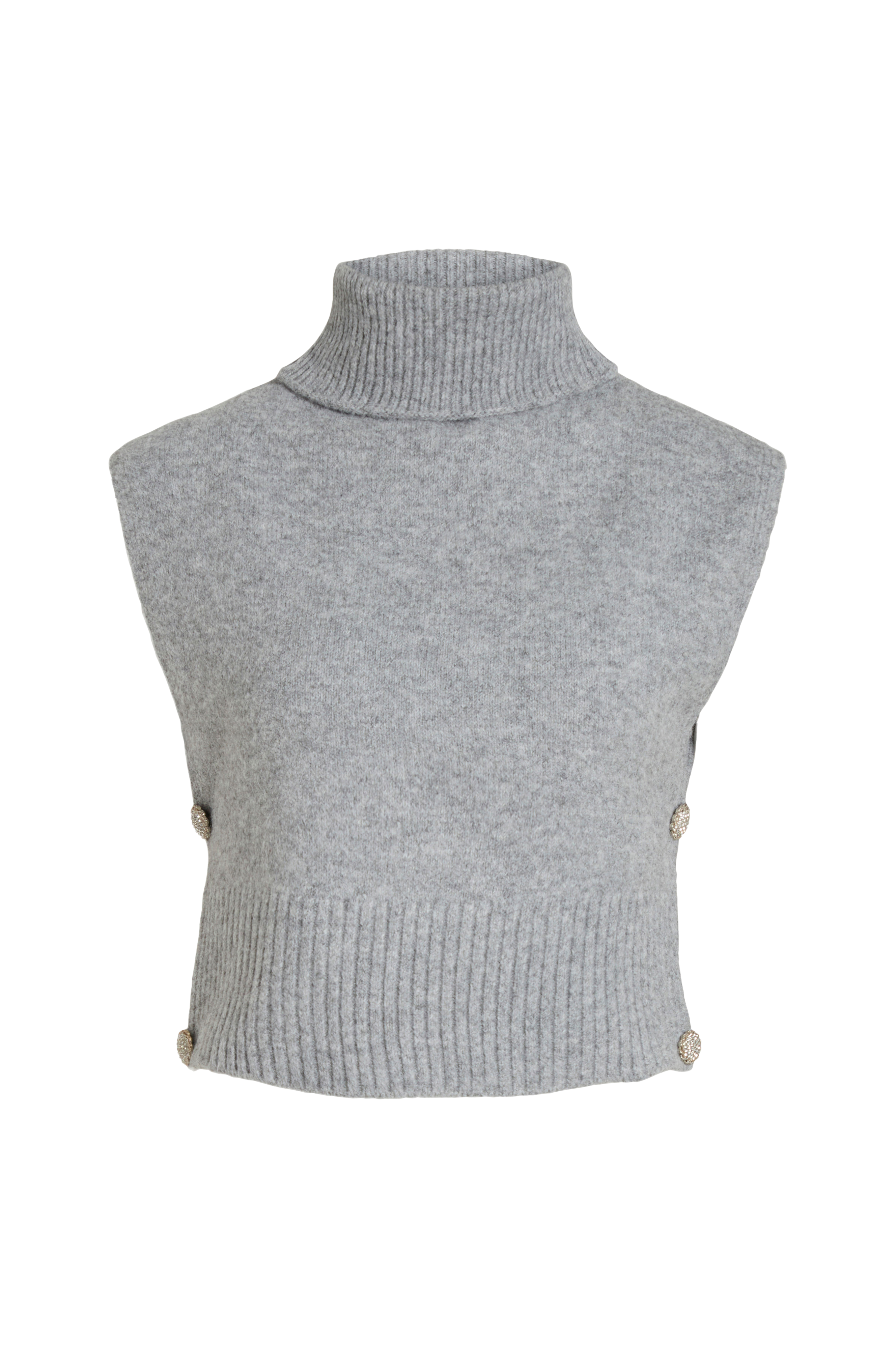• Rak modell• Öppna sidor med glittriga dekorknappar• Hög, ribbstickad krage• Bred ribbkant nedtill• Produkten innehåller återvunnet material som har tagits tillvara för att minska mängden avfall, samtidigt som nya resurser inte har förbrukats.