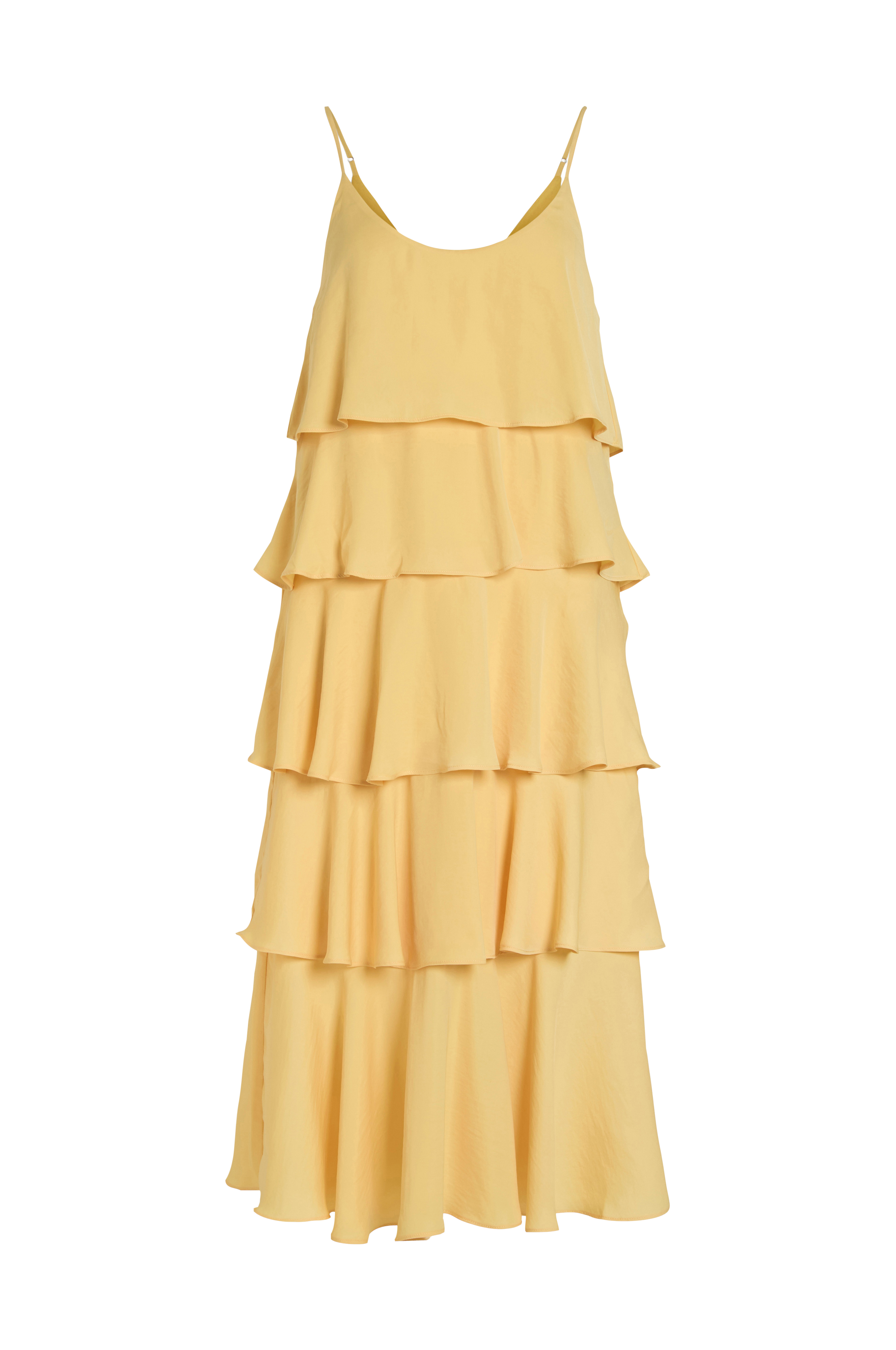 • Klänning med volanger• Smala, justerbara axelband• Trikåfoder• Längd: 122 cm i storlek 36
