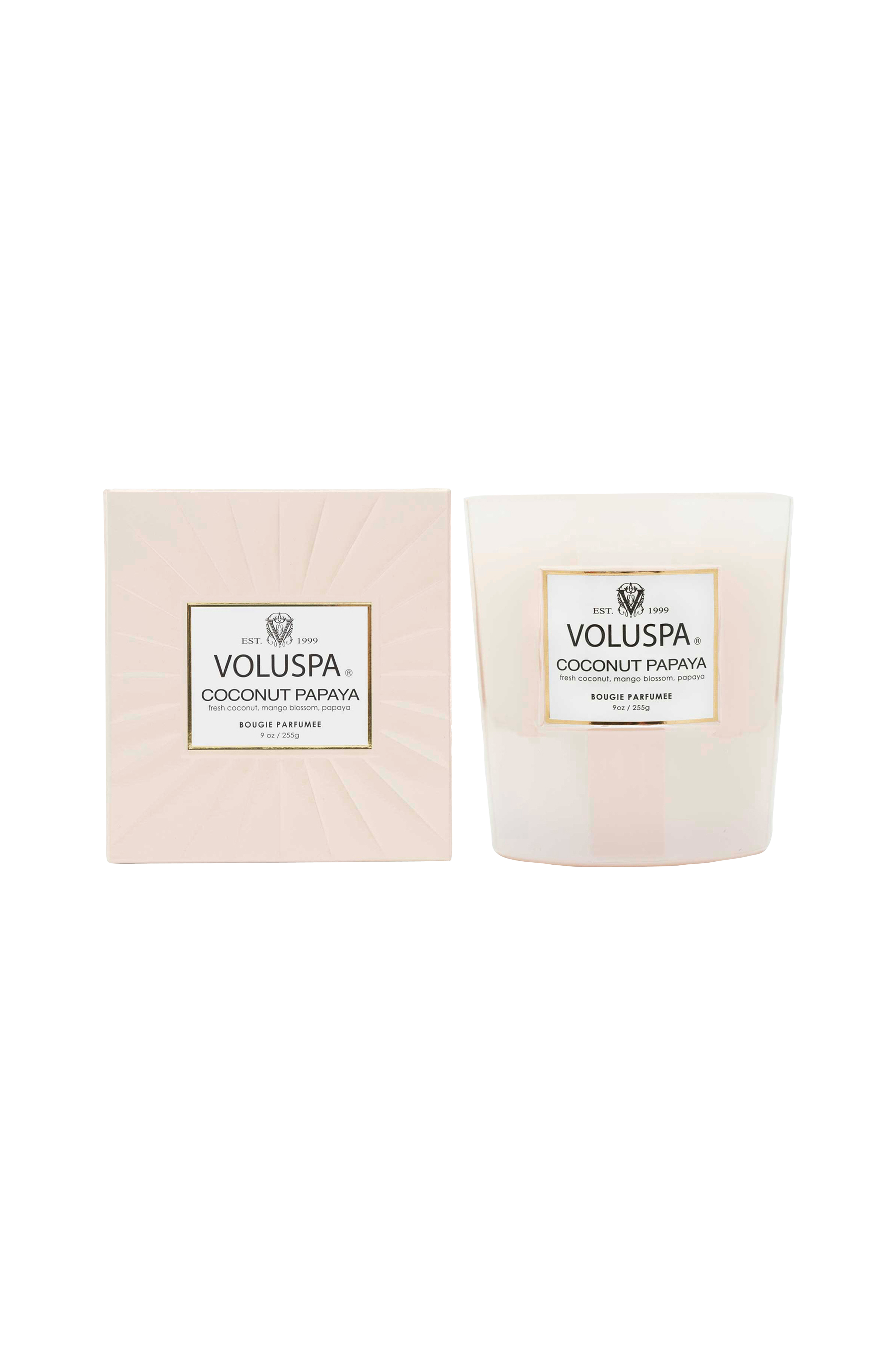 Noter av färsk kokosnöt, mangoblomma och papaya.