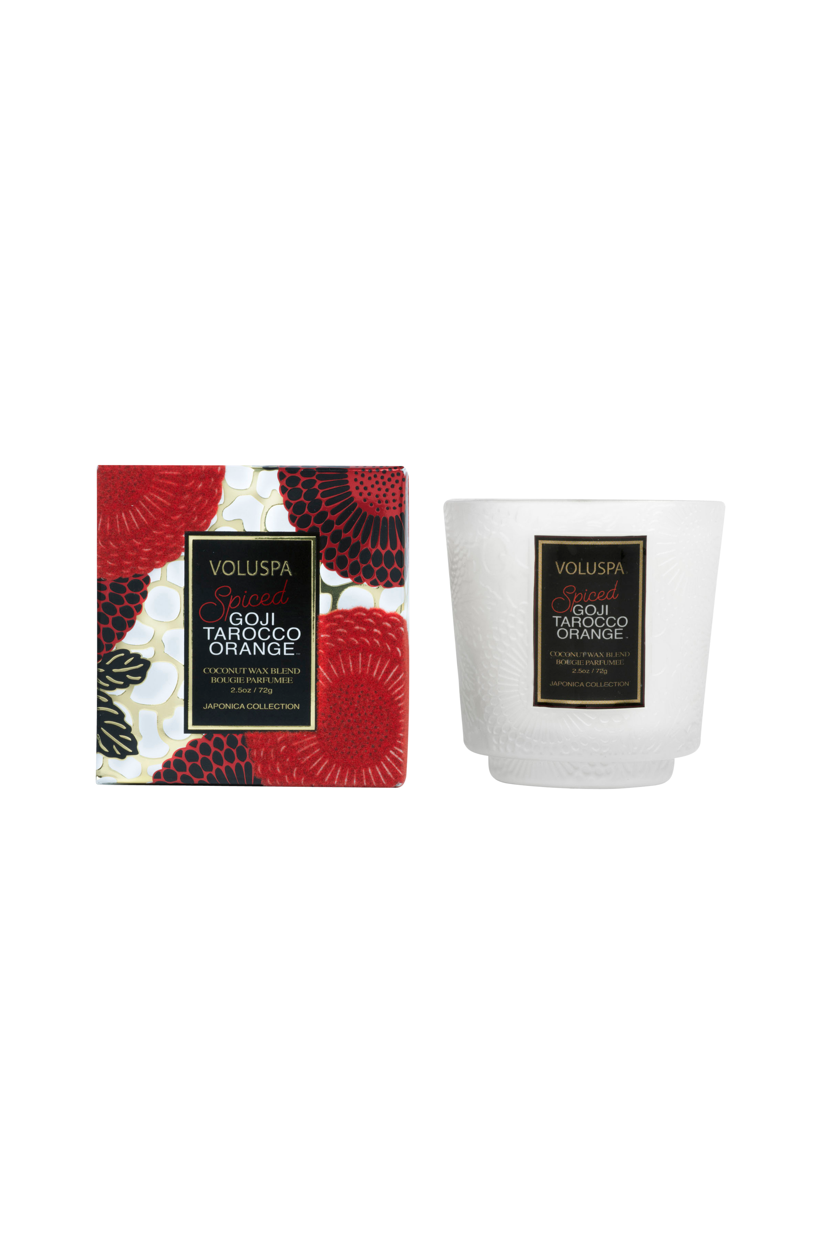 Doftnoter av tarocco apelsiner, goji bär, kryddnejlika och kanel. Denna produkt kan orsaka allergisk hudreaktion. Kan orsaka en allergisk hudreaktion. Trimma veken till 1/4" vid varje bränning. Placera candle på en värmetålig yta eller candle bricka. Låt vaxet smälta till candlekanten vid varje bränning för att förhindra tunnling. Håll ljusen borta från drag för att säkerställa en rökfri, ren förbränning. Använd en veke-snusare för att släcka ett candle utan sot eller rök. Sluta bränna ett candle när det återstår mindre än 1/4\ vax