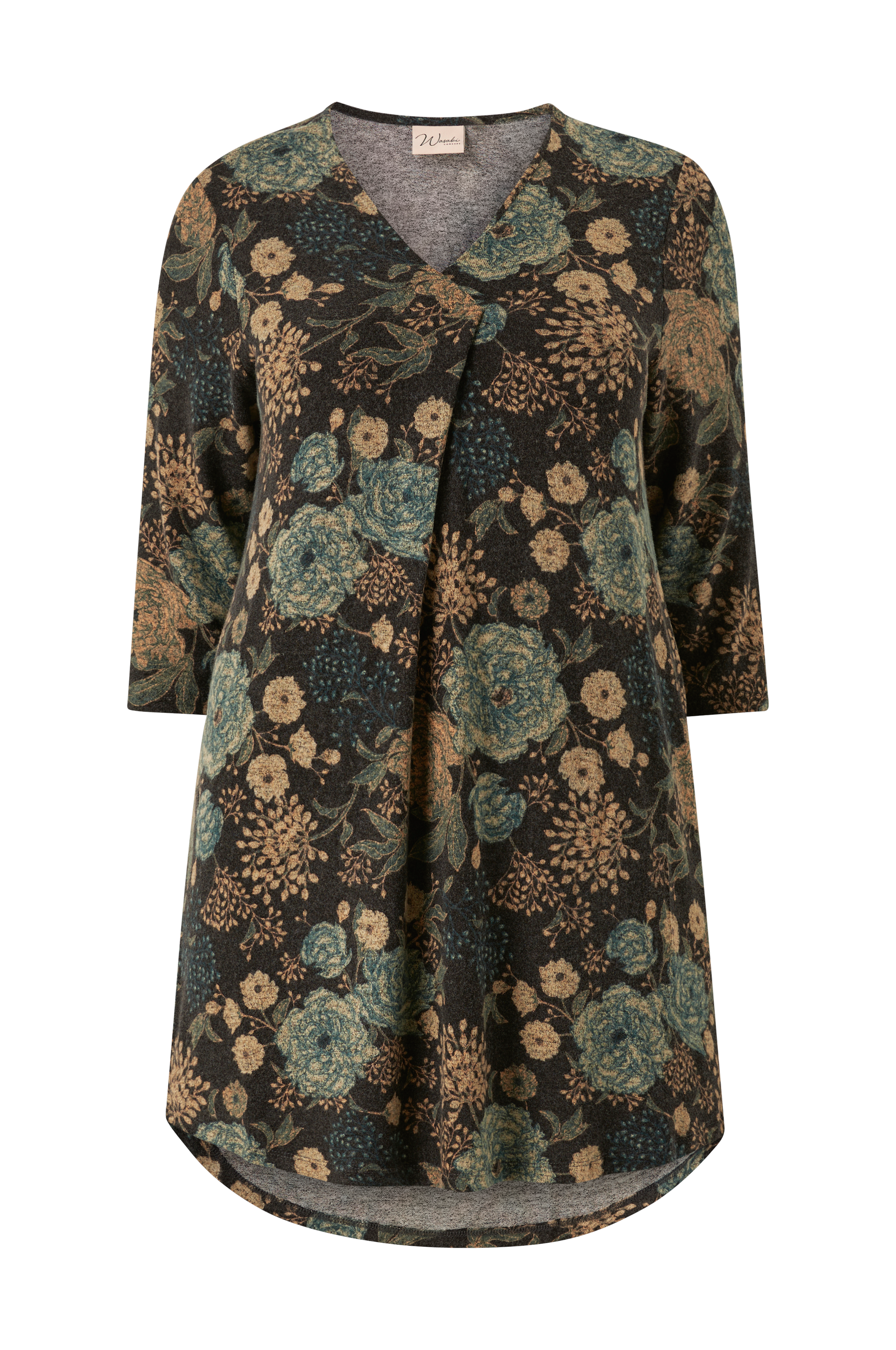 • V-ringad hals med ett veck på bröstet
