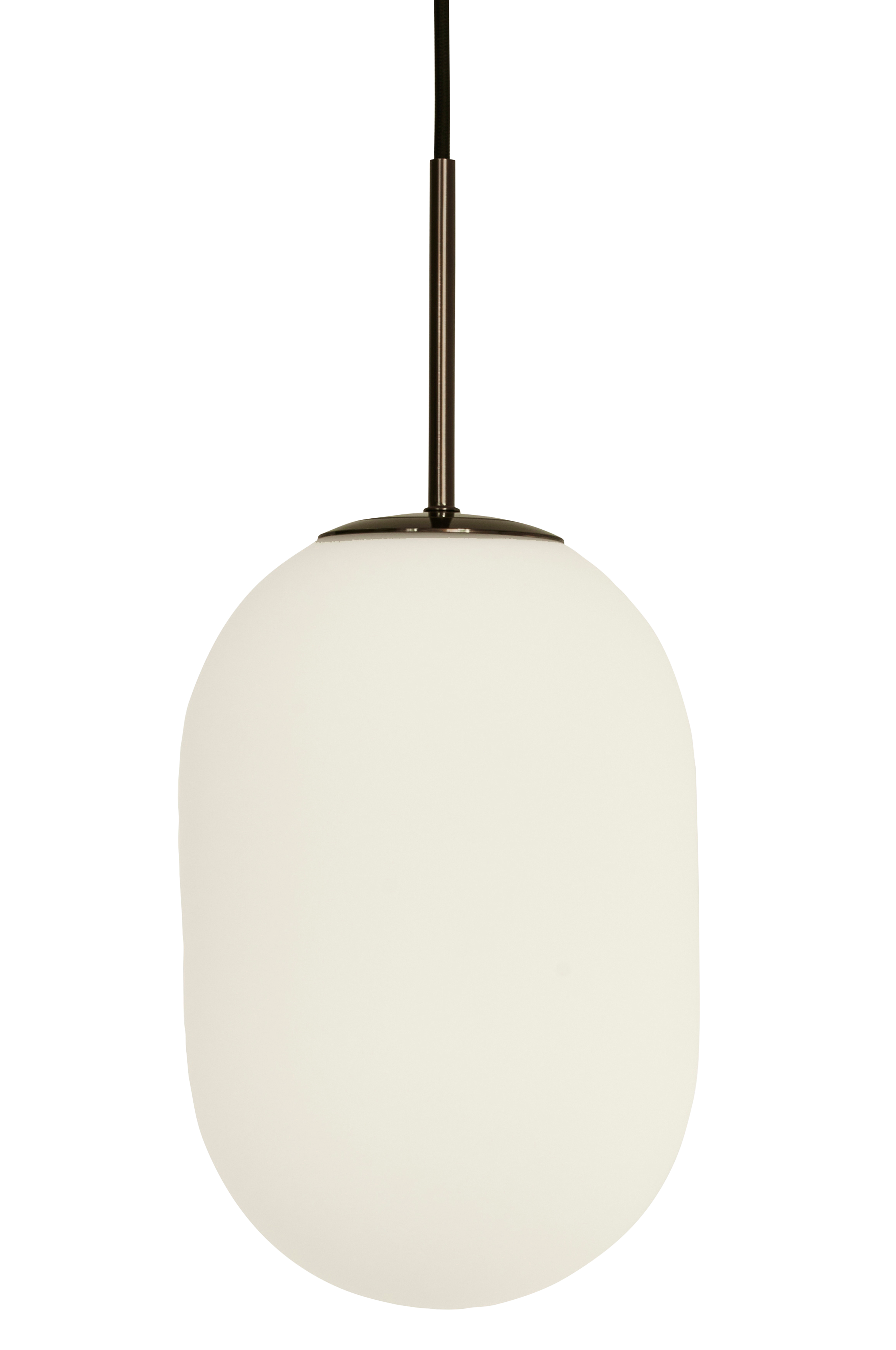 Noor Pendellampan M kombinerar sömlöst tidlös design med modern elegans. Den är tillverkad av munblåst opalglas och avger ett mjukt, jämnt sken, medan de svarta kromdetaljerna och den svarta textilsladden ger en raffinerad, sofistikerad touch. Pendeln levereras med en matchande takkopp för krokupphängning, vilket garanterar enkel installation. Perfekt för att skapa en exklusiv atmosfär i köket, vardagsrummet eller matplatsen. Häng den i par över ett matbord för en balanserad och elegant effekt. Det munblåsta glaset ger varje lampa en unik karaktär, och i kombination med en dimbar E14 LED-lampa får du energieffektiv och anpassningsbar belysning för alla tillfällen.