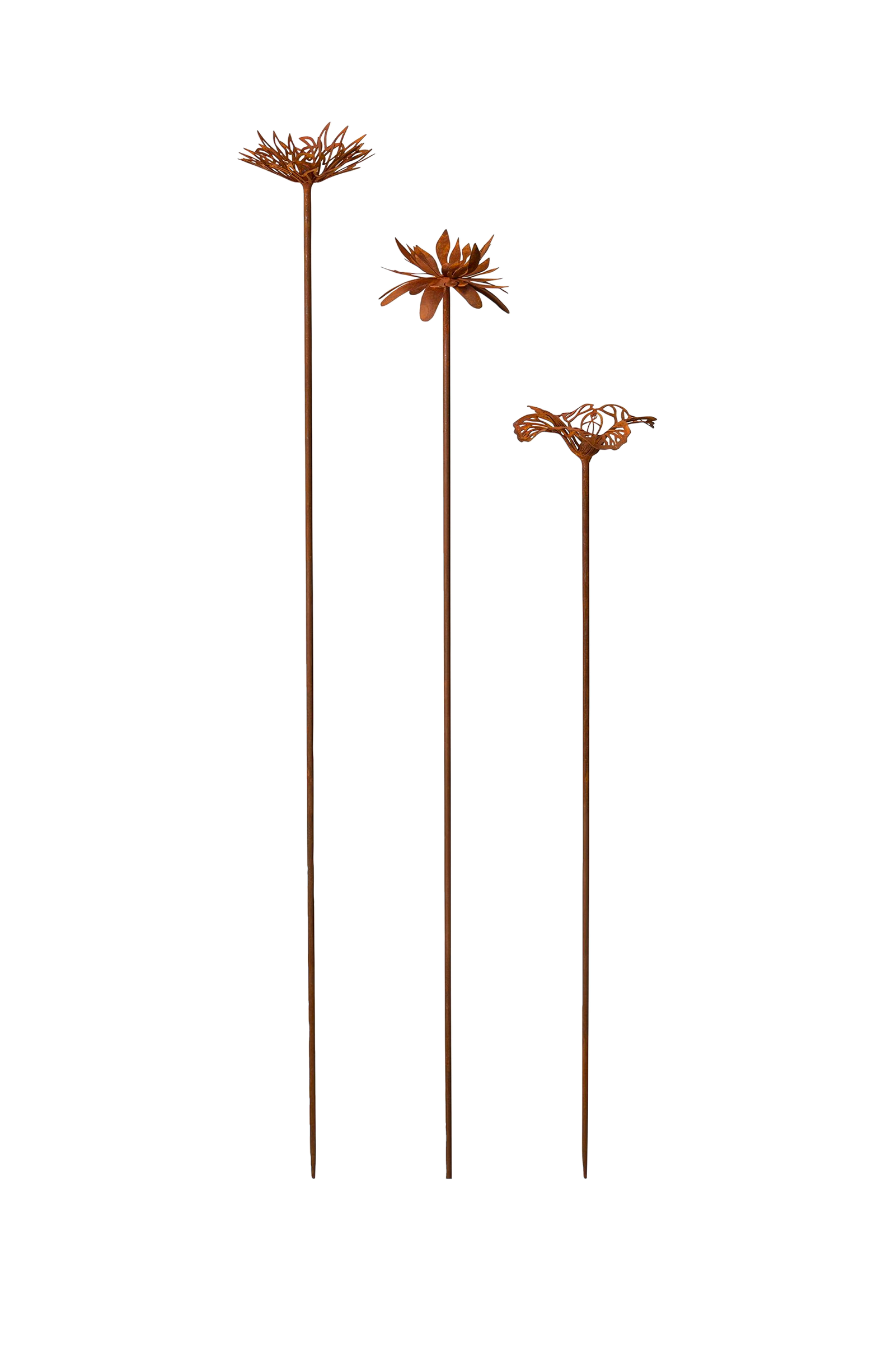 Blomma pinnar set om 3st, 13x100cm, 12x90cm, 14x75cm rostade
