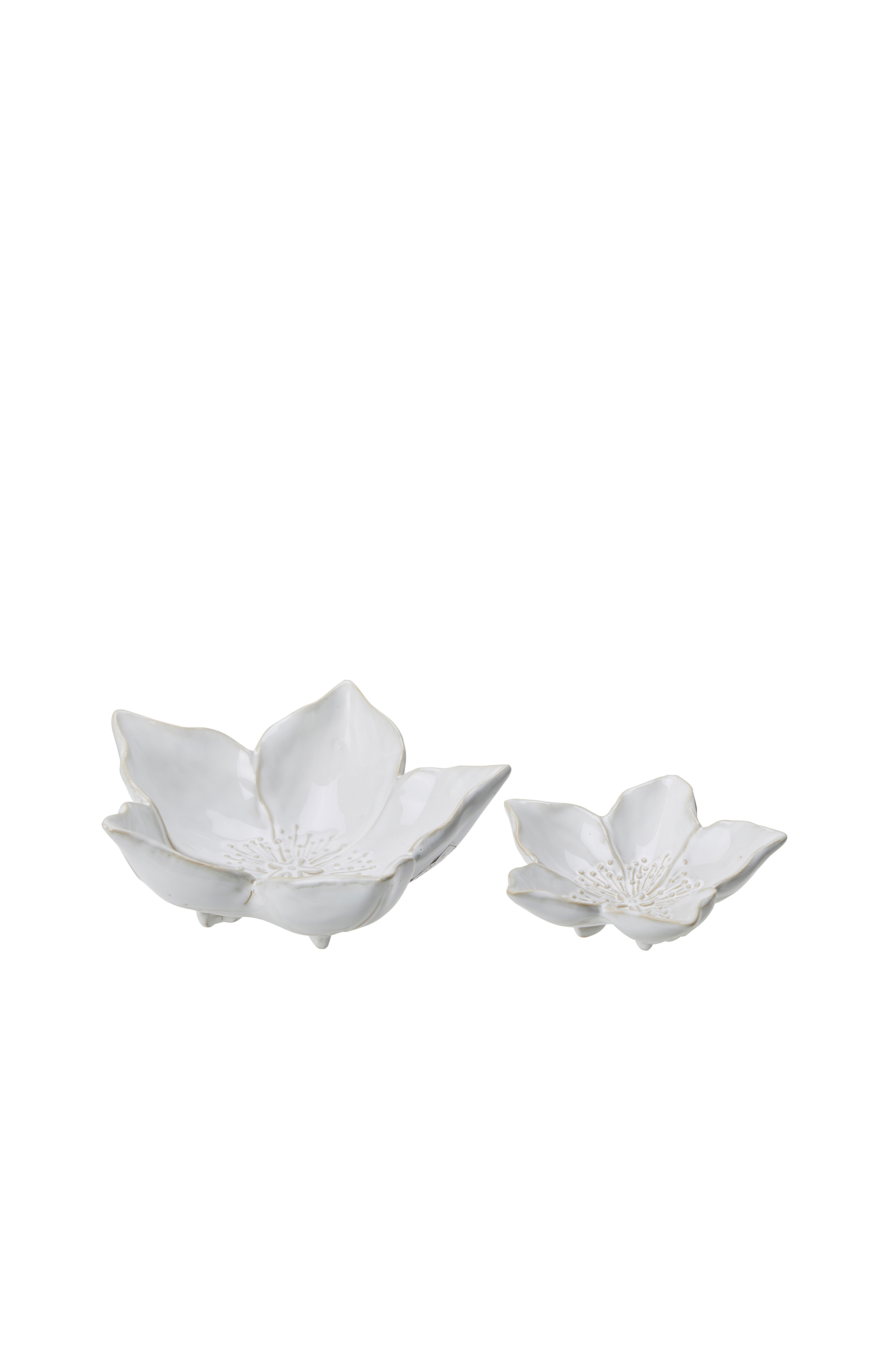 Helle blomformade fat av porslin. Mått 18 x 6 och 12 x 4 cm.