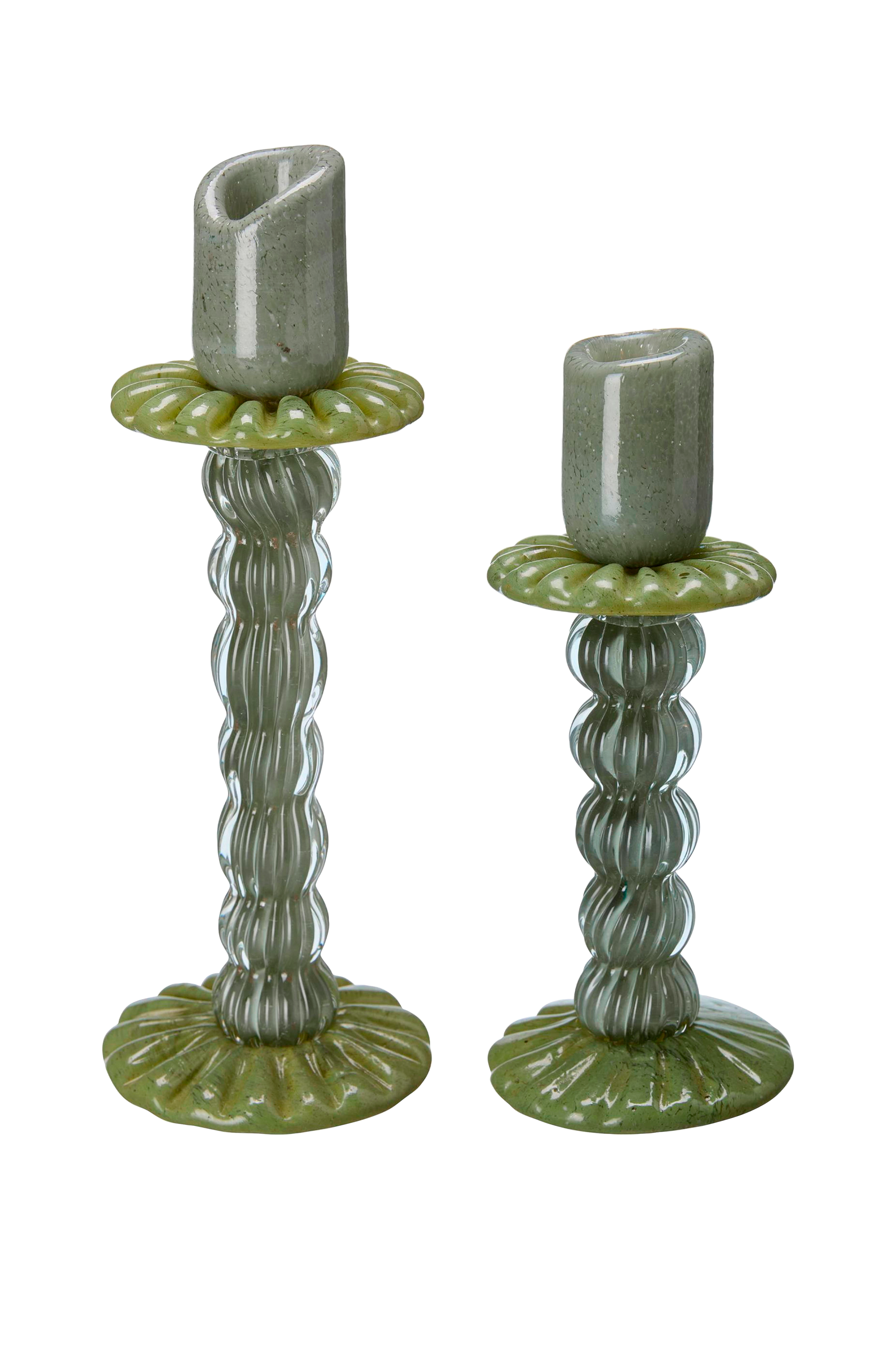 Ljusstake malina grön set om 2 st, 11x30 11x24cm ø2,2 cm, ø2,2 cm