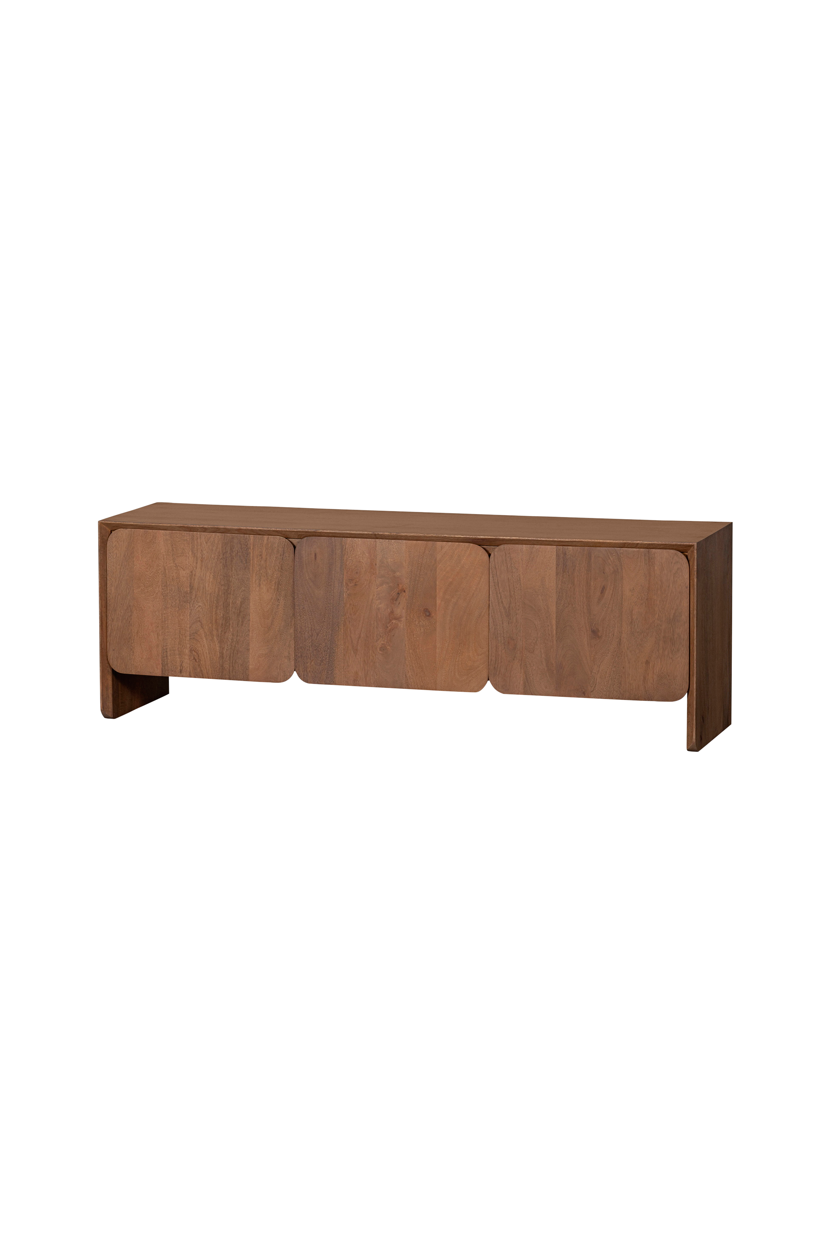tv-skåpet jerre från det holländska inredningsmärket woood ger atmosfär och värme till ditt hem. Basens eleganta linjer växlar med dörrarnas rundade hörn. Ådringarna och kvistarna i mangoträet ger tv-skåpet ett autentiskt utseende.