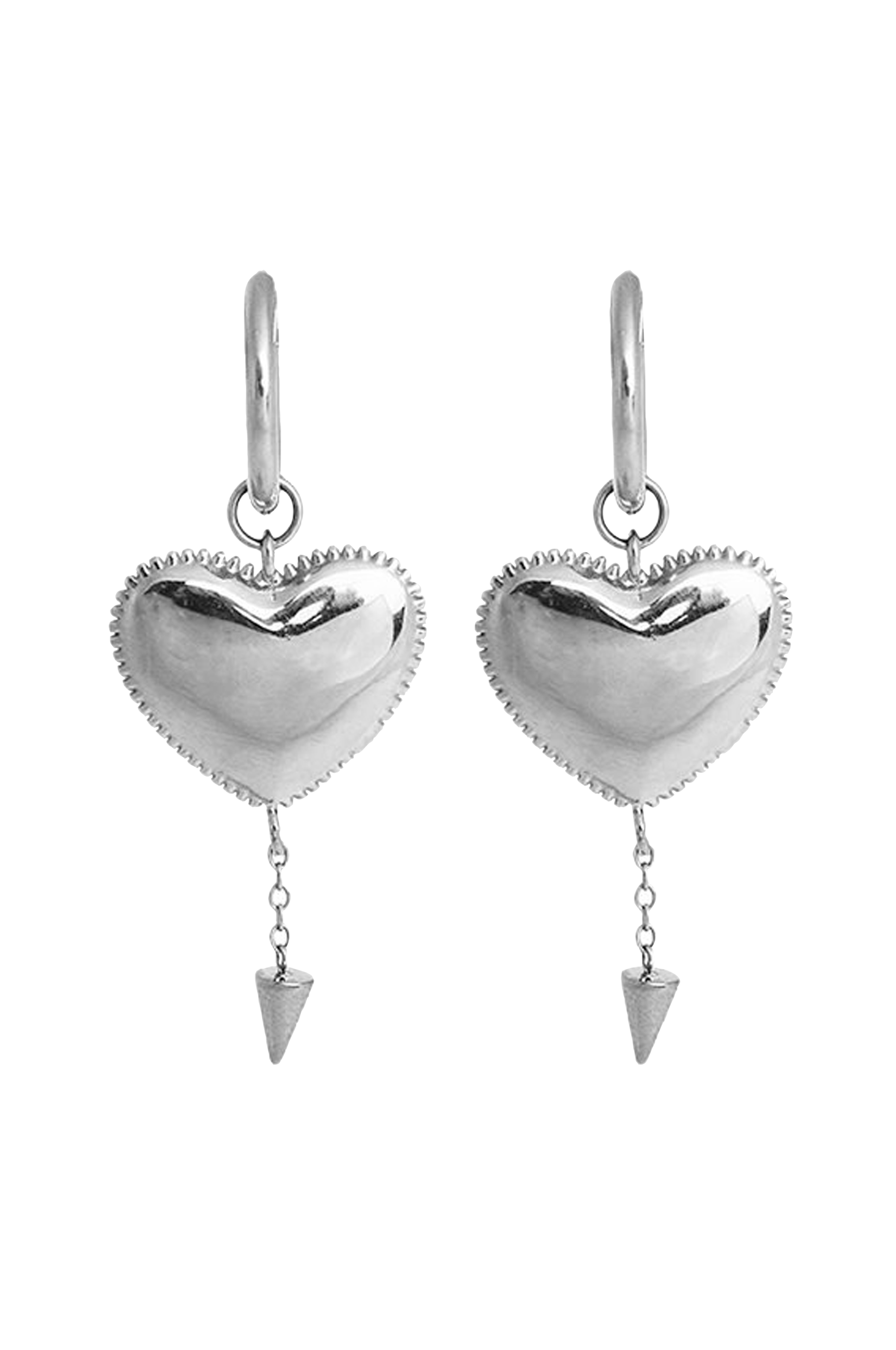 • Silverpläterade ringar i rostfritt stål med hjärtapplikation• Nickeltestade• Längd 5 cmBredd 2 cm
