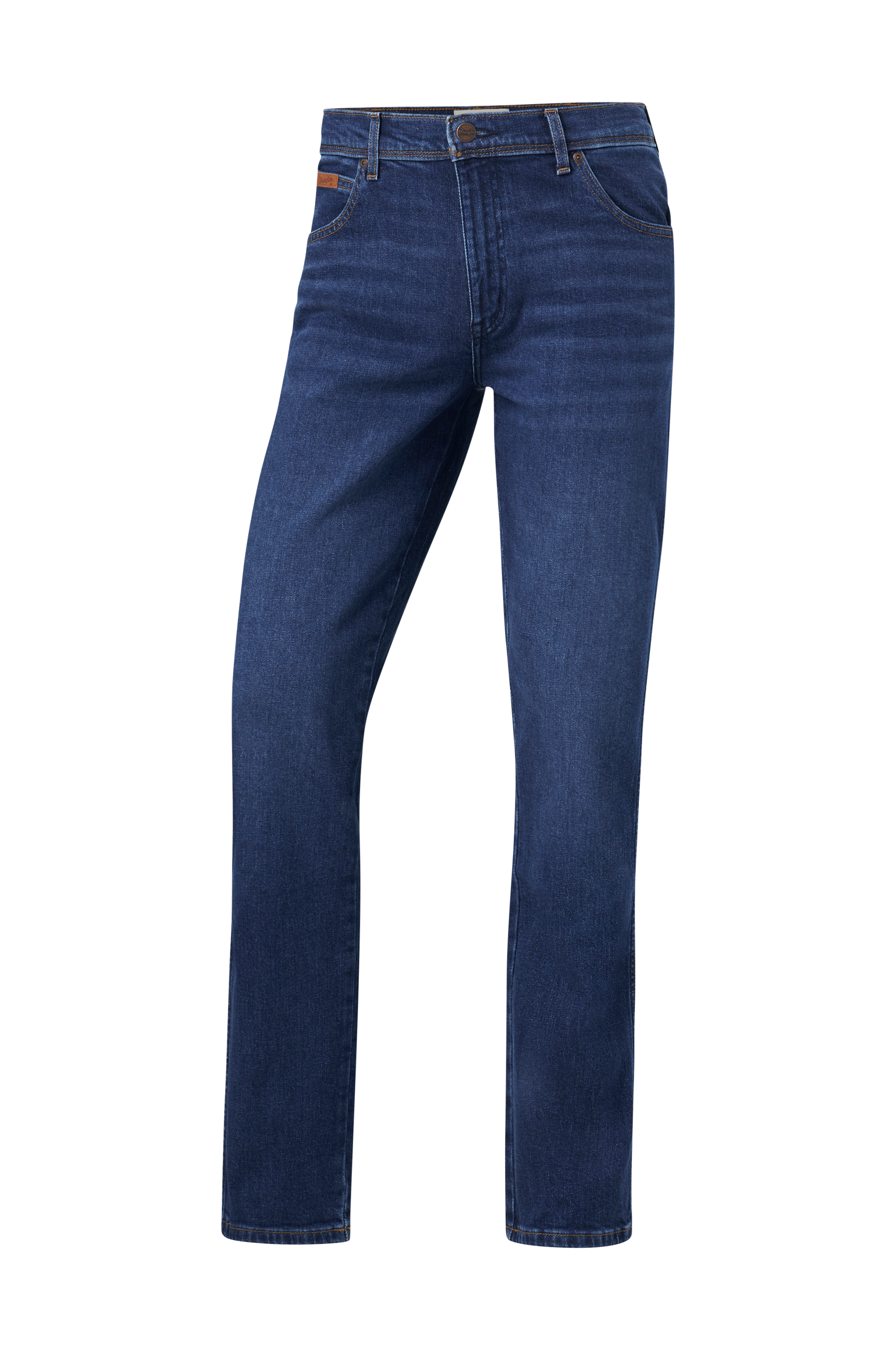 Jeans i stretchdenim med raka ben. Femficksmodell med dragkedja i gylfen.