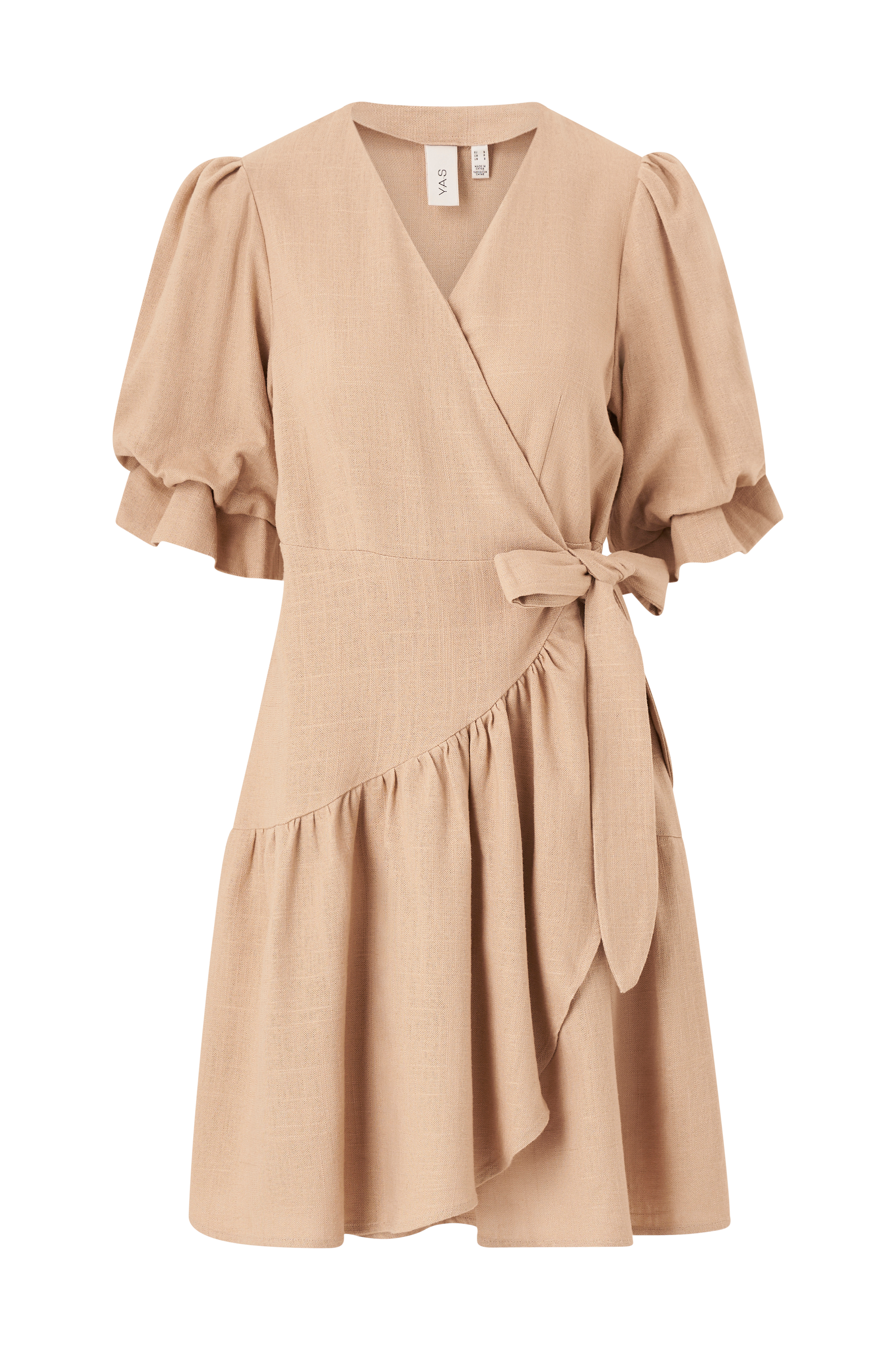 • Klänning i linnemix• Halvlånga puffärmar• Knytband i sidan• Volang på kjolen• Längd: 95 cm i storlek S
