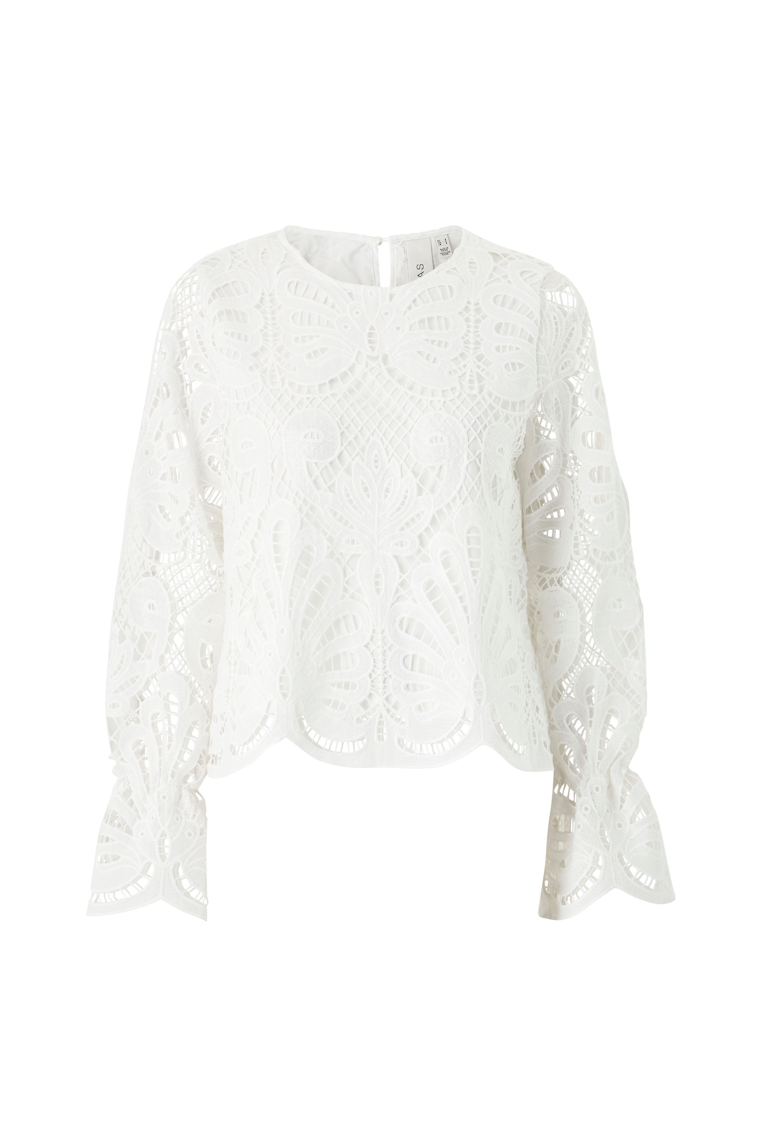 • Rak modell i spets• Halsringning med knapp i nacken• Lång ärm med resårsöm nedtill• Fodrad