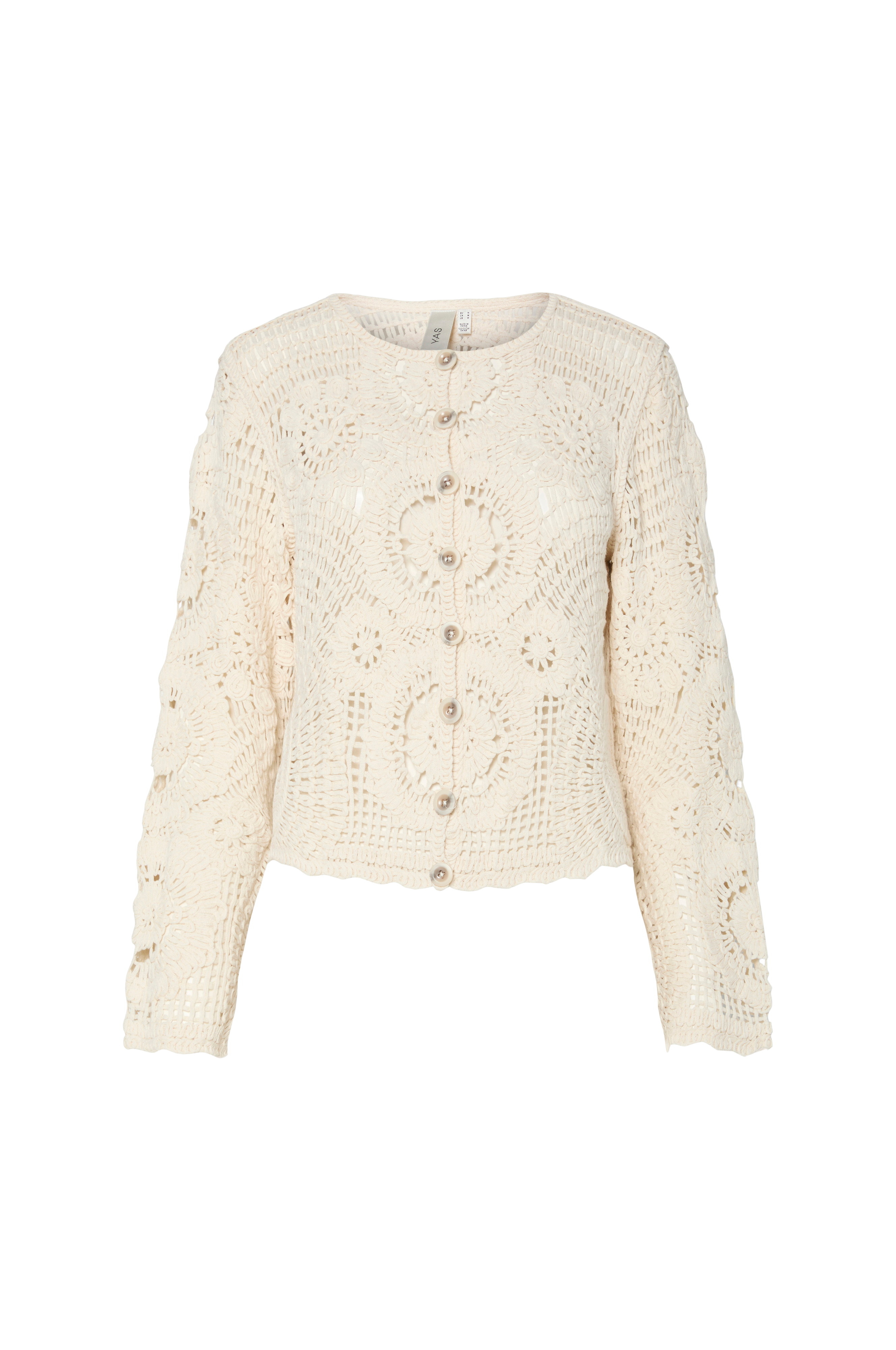 • Glesstickad, mönsterstickad modell• Rund hals• Knappar fram• Rak, lång ärm