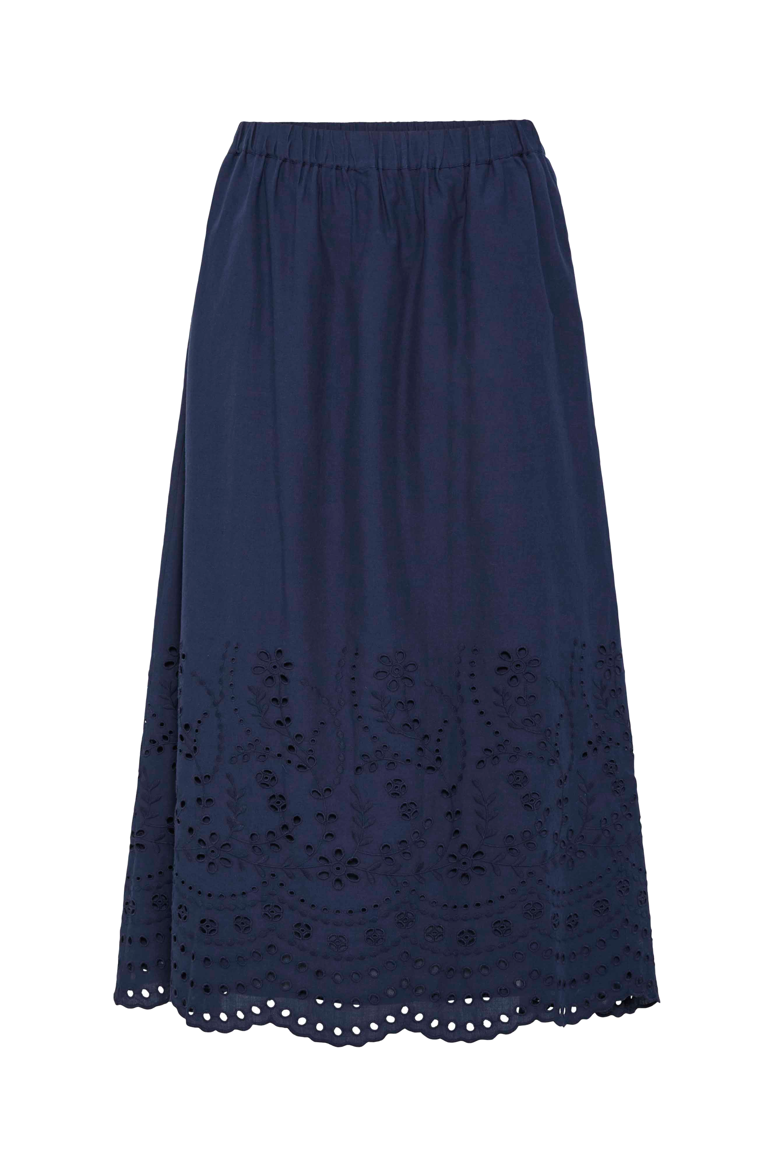 • Fodrad kjol i bomull• Elastisk midja• Hålbroderier nedtill och runt om• Längd: 86 cm i storlek 36