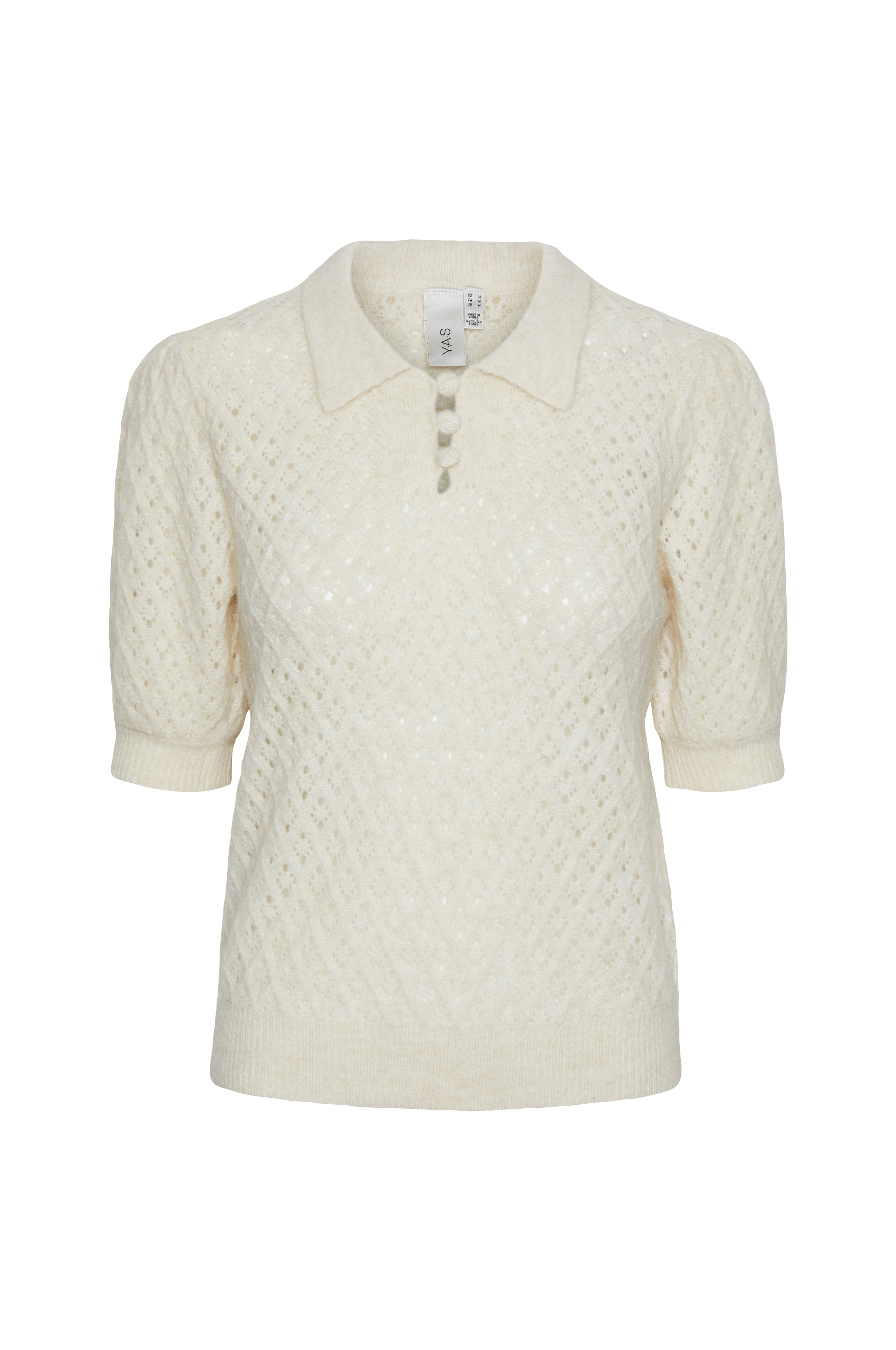 • Mönsterstickad modell• Ribbstickad krage• Klädd dekorknapp i halsen• Kort puffärm med ribbstickat ärmslut• Ribbstickning i nederkanten