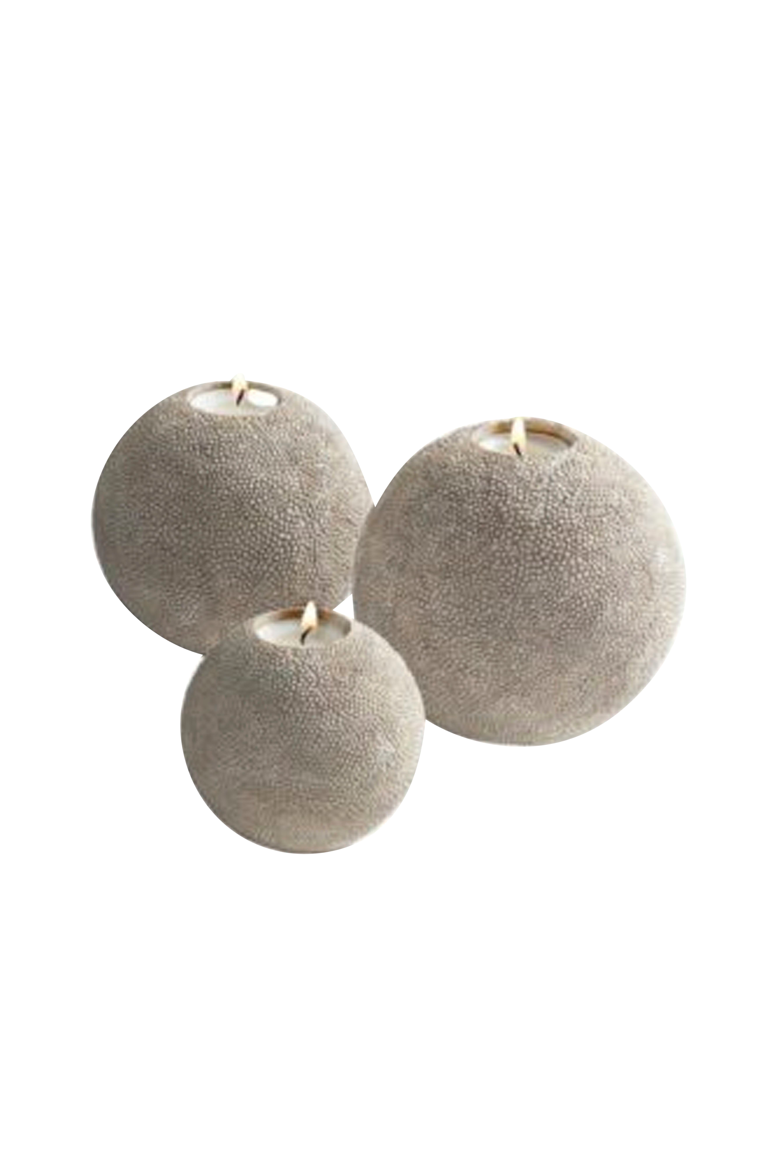 Set/3 klotformade ljusstakar tillverkade i tåligt polyresin.