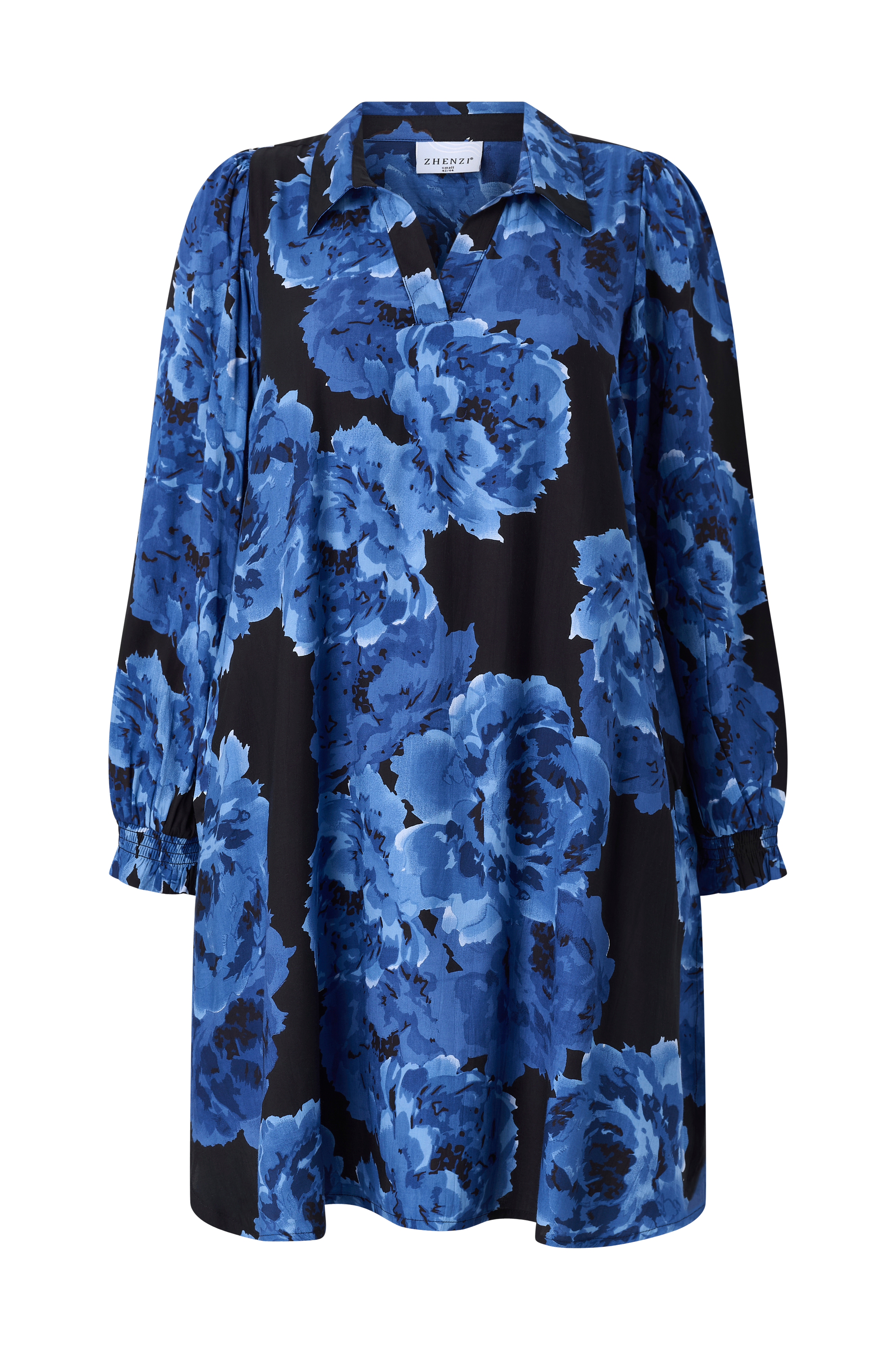 • Blommönstrad klänning i viskos• V-ringad hals med krage upptill• Ballongärmar med smock och volangkant• Slitsar nedtill i sidorna• Sidfickor• Längd: 100 cm i storlek S• Plusstorlekar