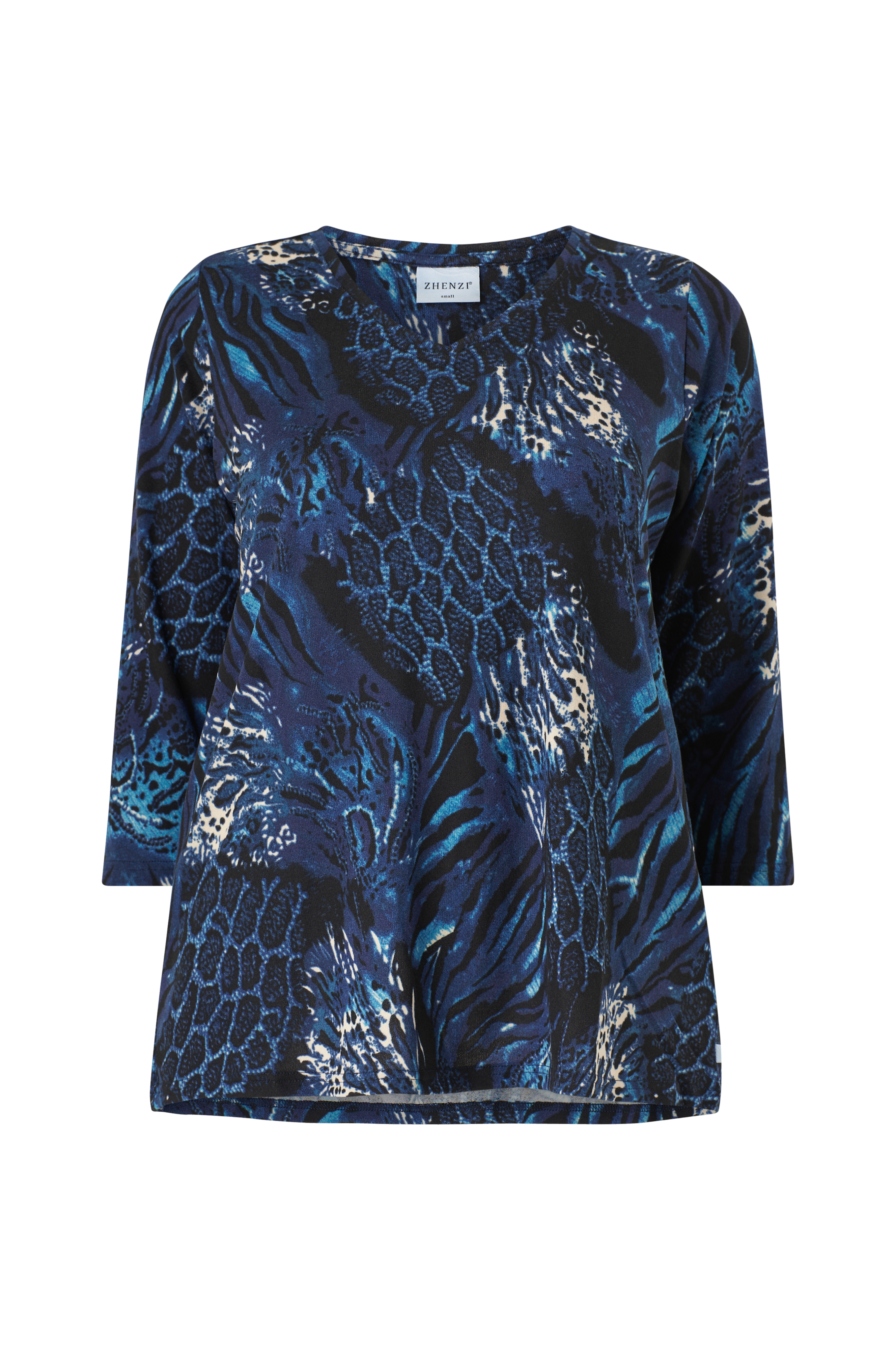 • Plusstorlekar• Utsvängd modell• V-ringad hals• Rak, 3/4-lång ärm