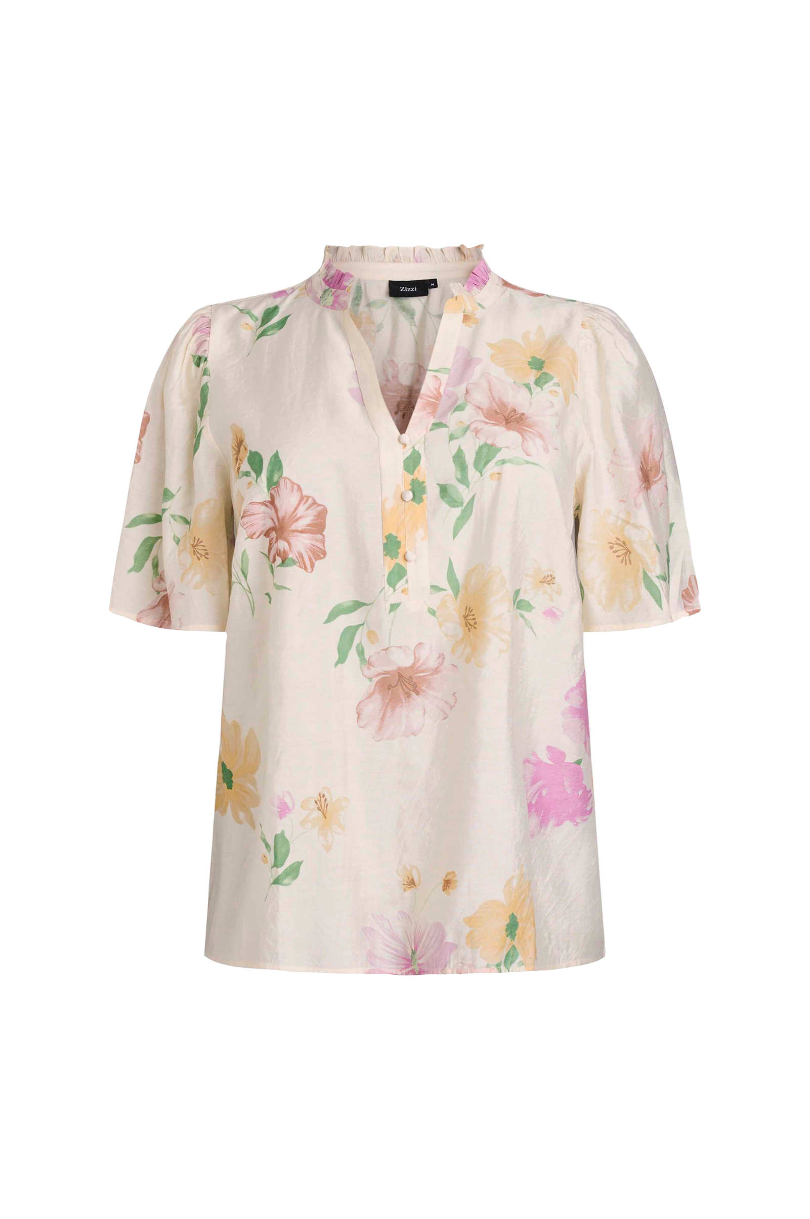 • V-ringning med klädda knappar• Volang i halsen• Halvlånga puffärmar• Plusstorlekar