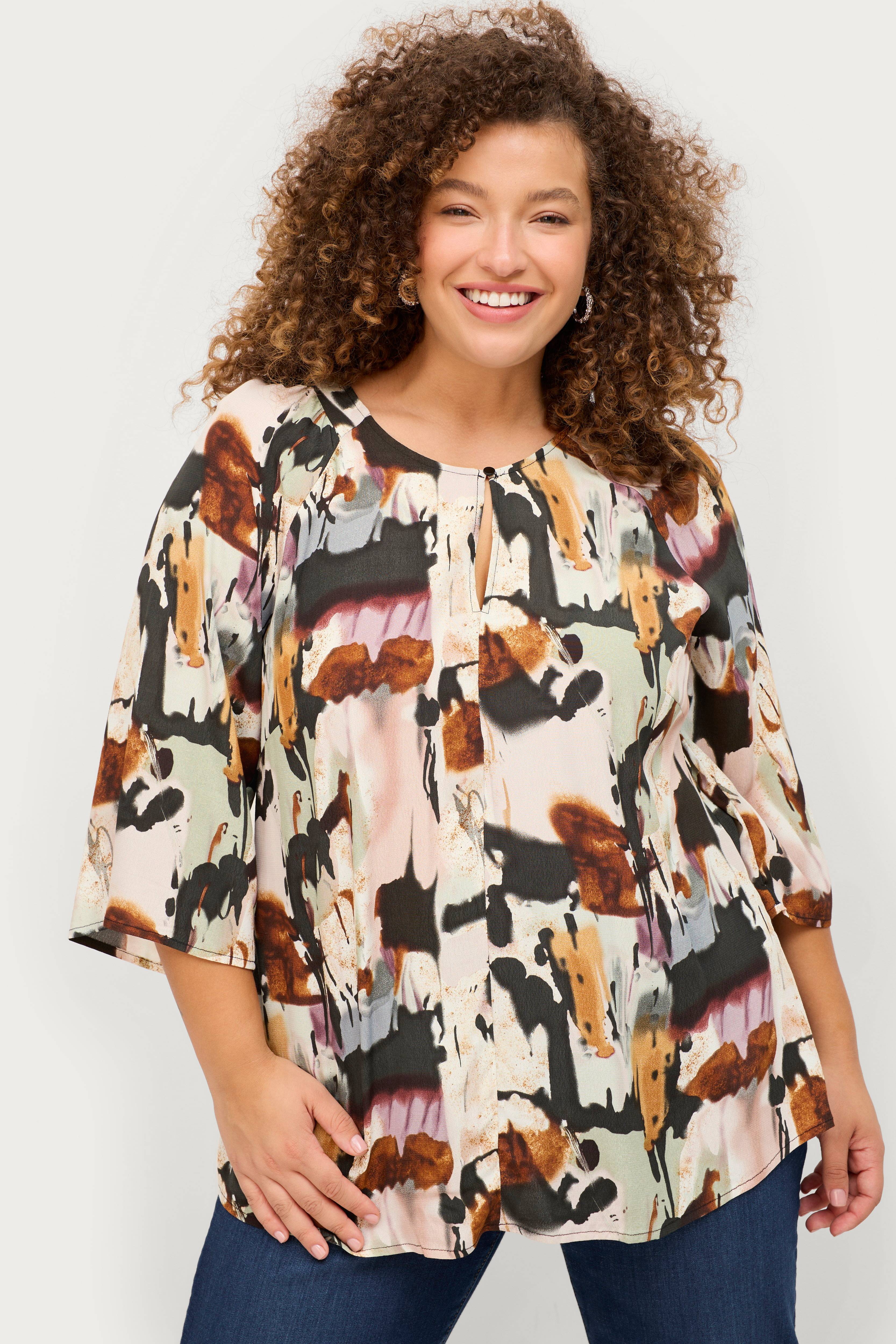 • Mönstrad blus i viskos• Rund hals med sprund och knapp fram• 3/4-långa ärmar• Lös passform• Plusstorlekar