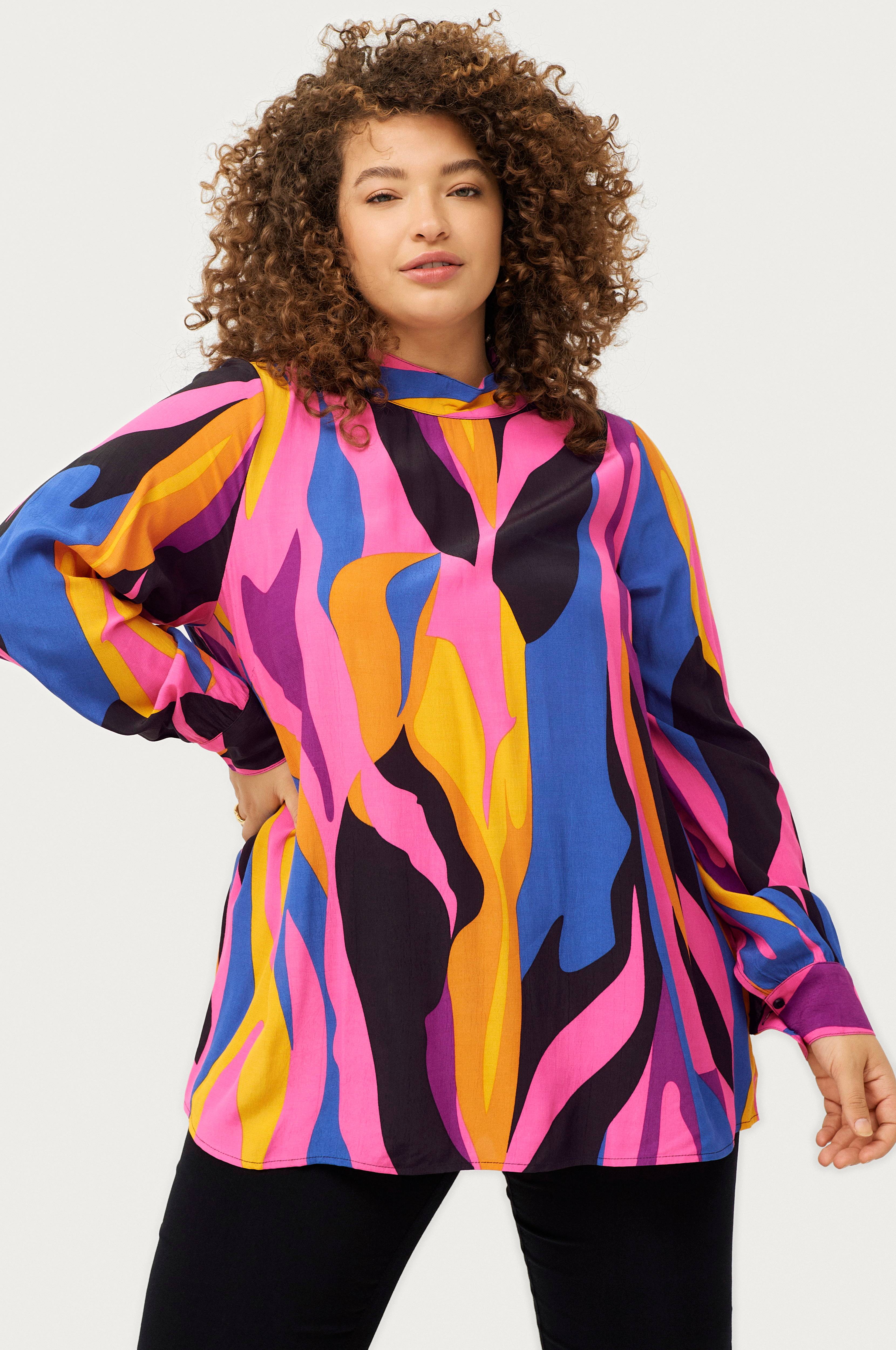 • Något längre modell• Hög halsringning• Sprund med knapp i nacken• Långa ärmar med manschett i ärmsluten• Plusstorlekar