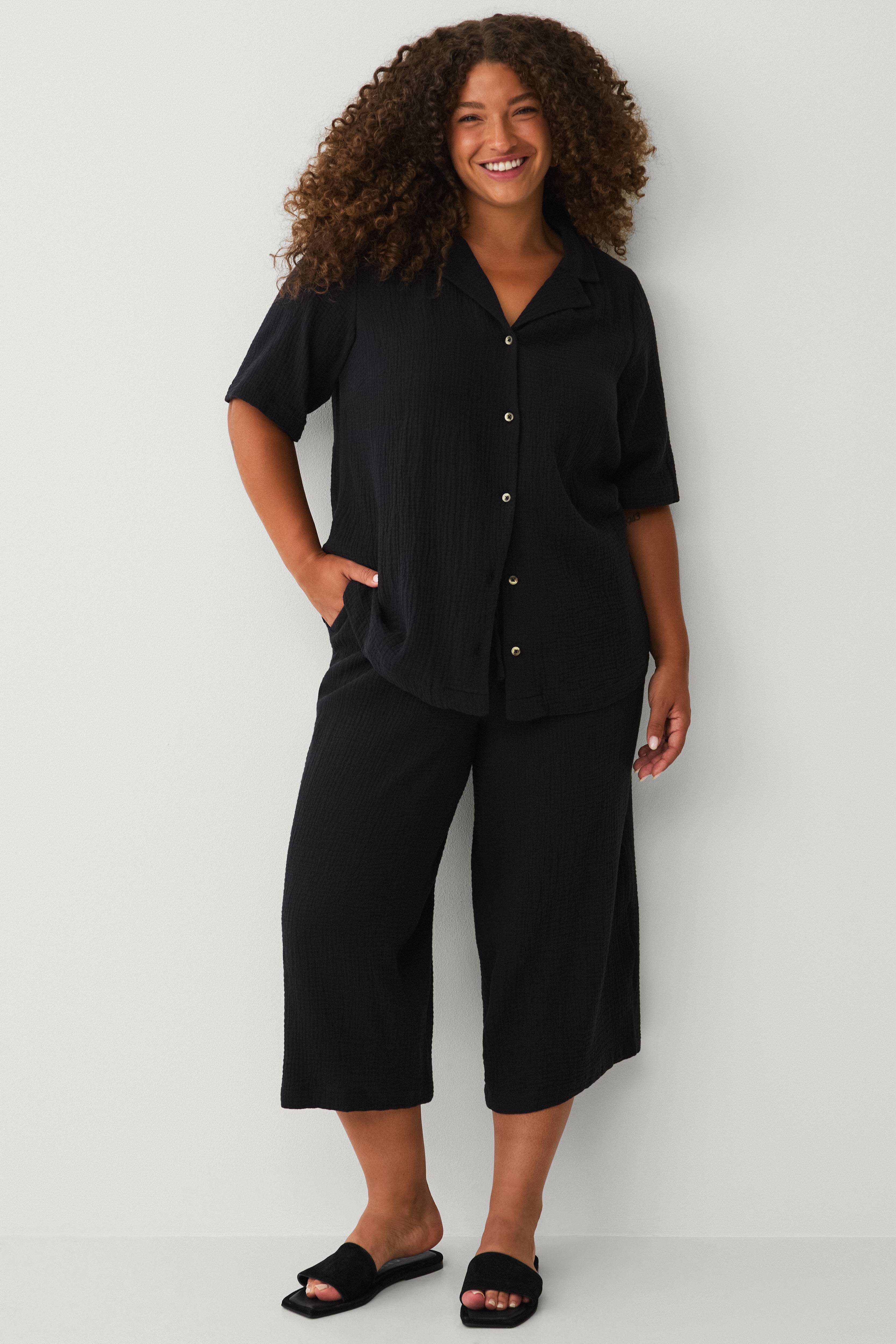 Passar storleken, avslappnade, ganska lösa byxor. Bekväma att ha på sig och helheten blus+byxor är en tillräckligt 'snygg' outfit för många olika aktiviteter och situationer. Man ka…
