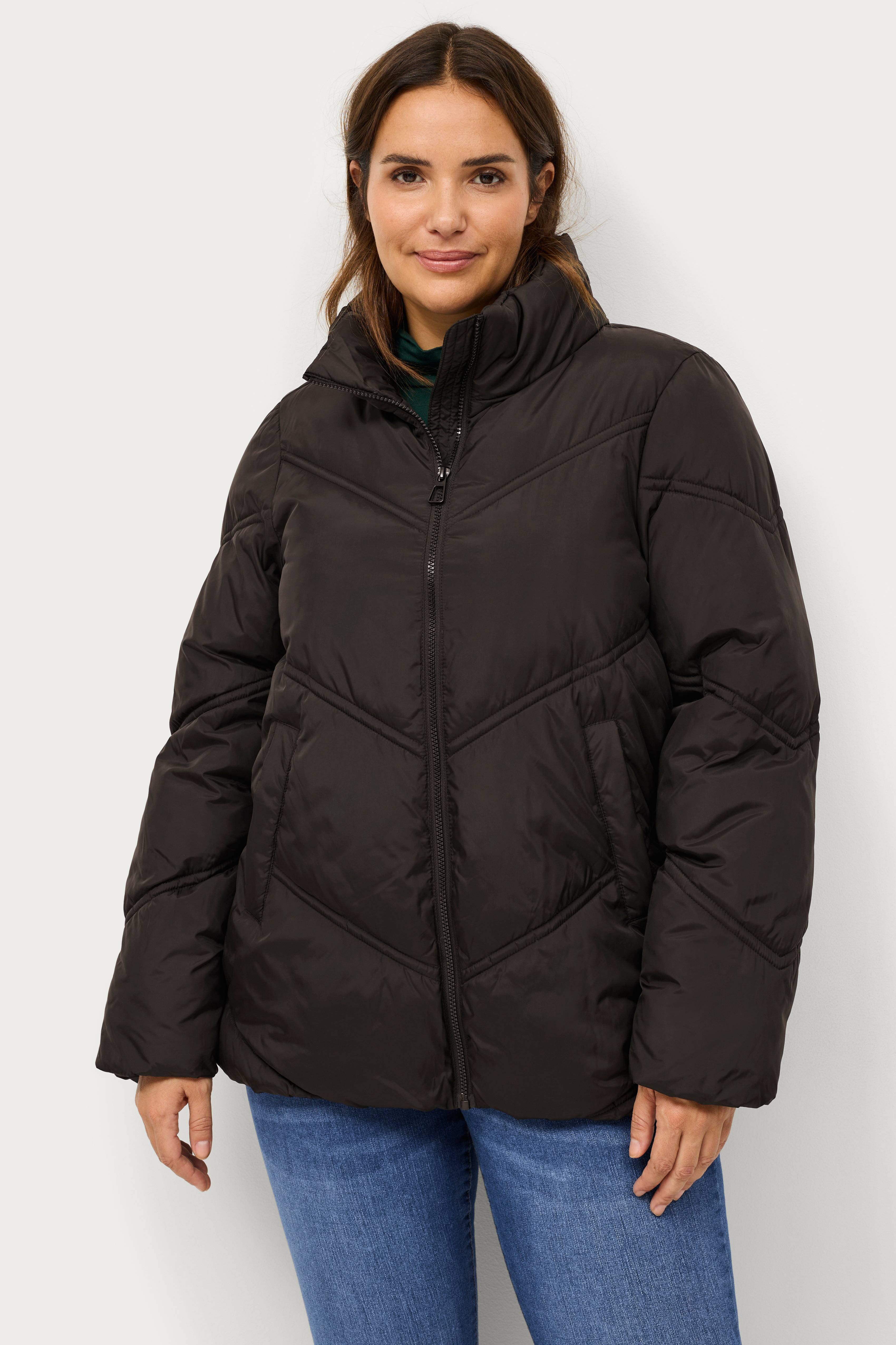 • Quiltad, vadderad pufferjacka• Hög, vadderad krage• Dragkedja• Två fickor med tryckknappsstängning• Resår i ärmsluten och i nederkanten• Plusstorlekar• Längd: 76 cm i storlek S
