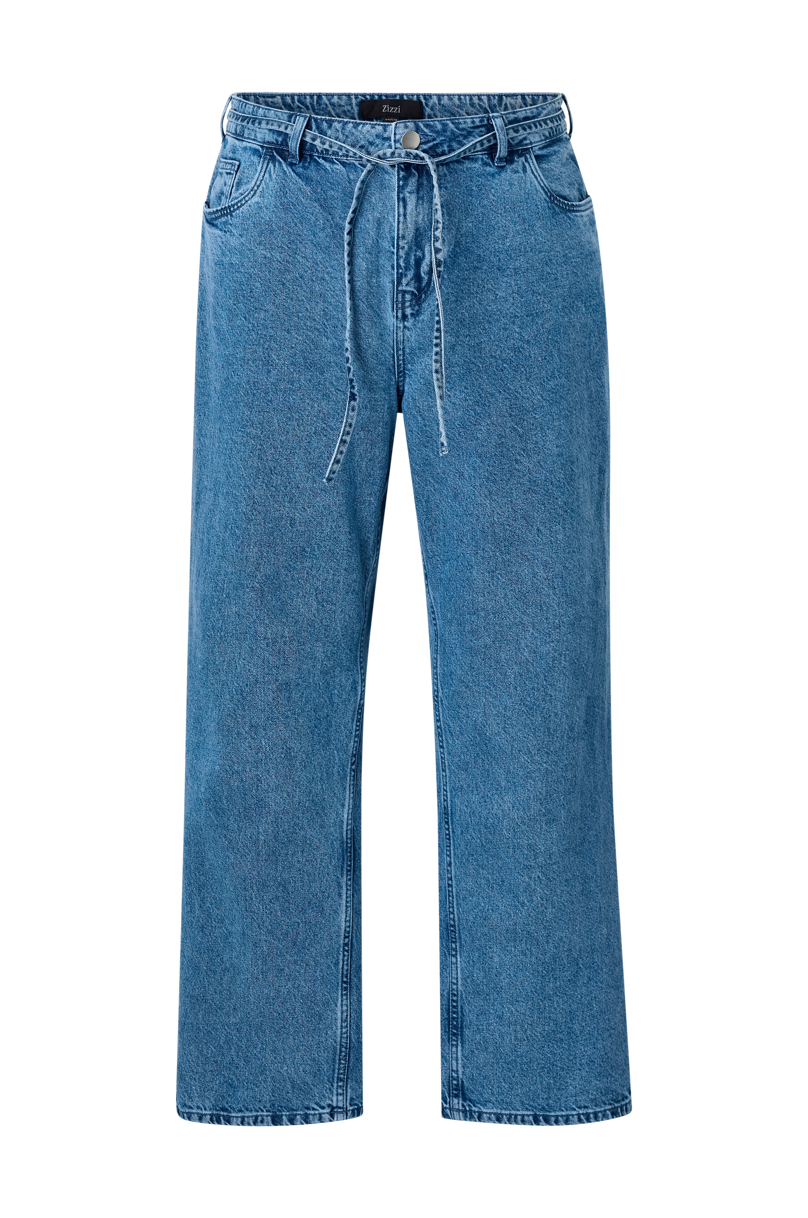 • Högmidjade jeans i bomull• Rak passform• Avtagbart knytskärp i midjan• Dragkedjegylf• Femficksmodell• Plusstorlekar