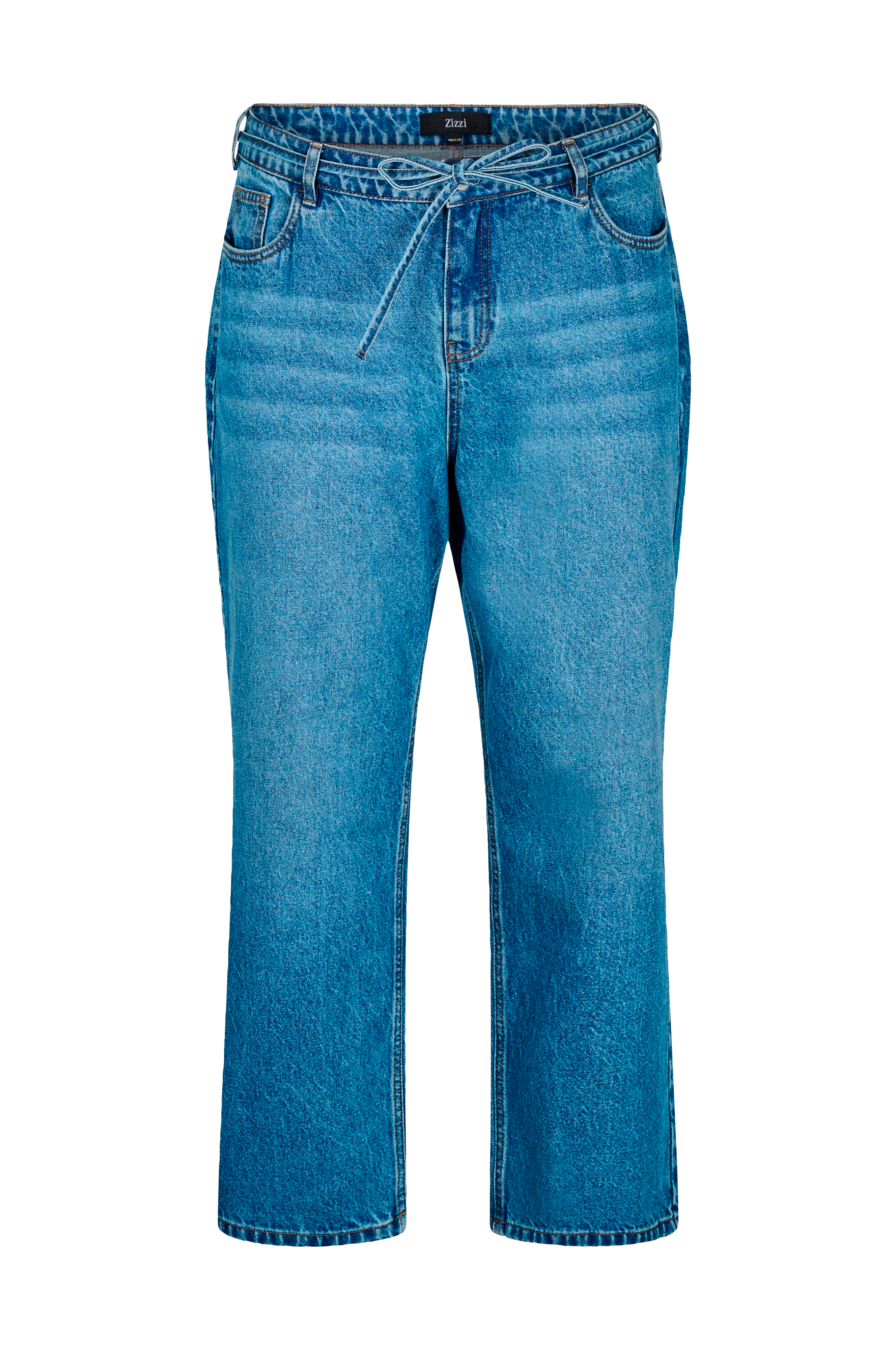 • Högmidjade jeans i bomull• Rak passform• Avtagbart knytskärp i midjan• Dragkedjegylf• Femficksmodell• Plusstorlekar