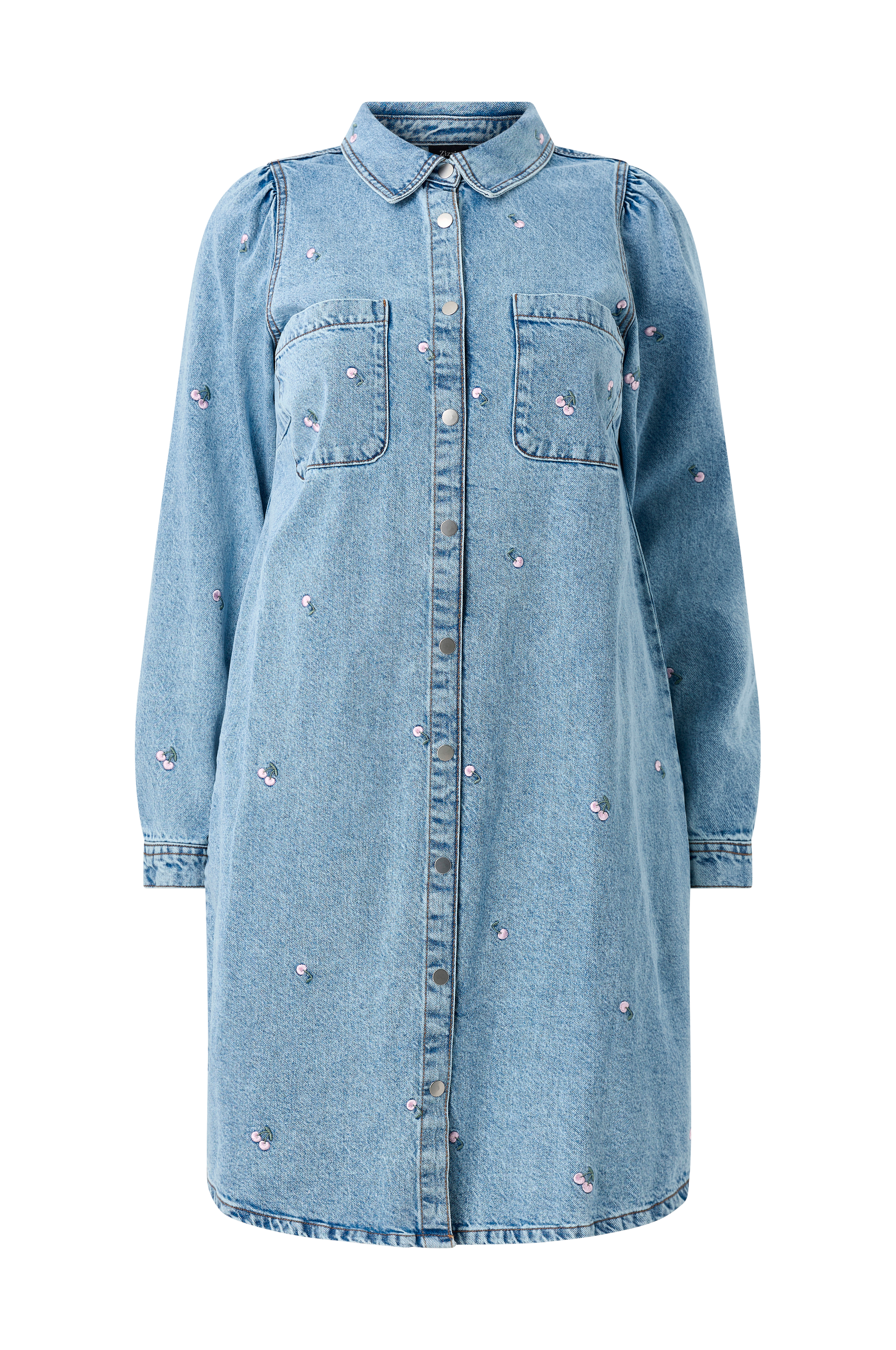 • Jeansklänning med broderade hjärtan runt om• Tryckknappsstängning hela vägen fram• Två bröstfickor• Tryckknapp i ärmsluten• Plusstorlekar• Längd: 102 cm i storlek S