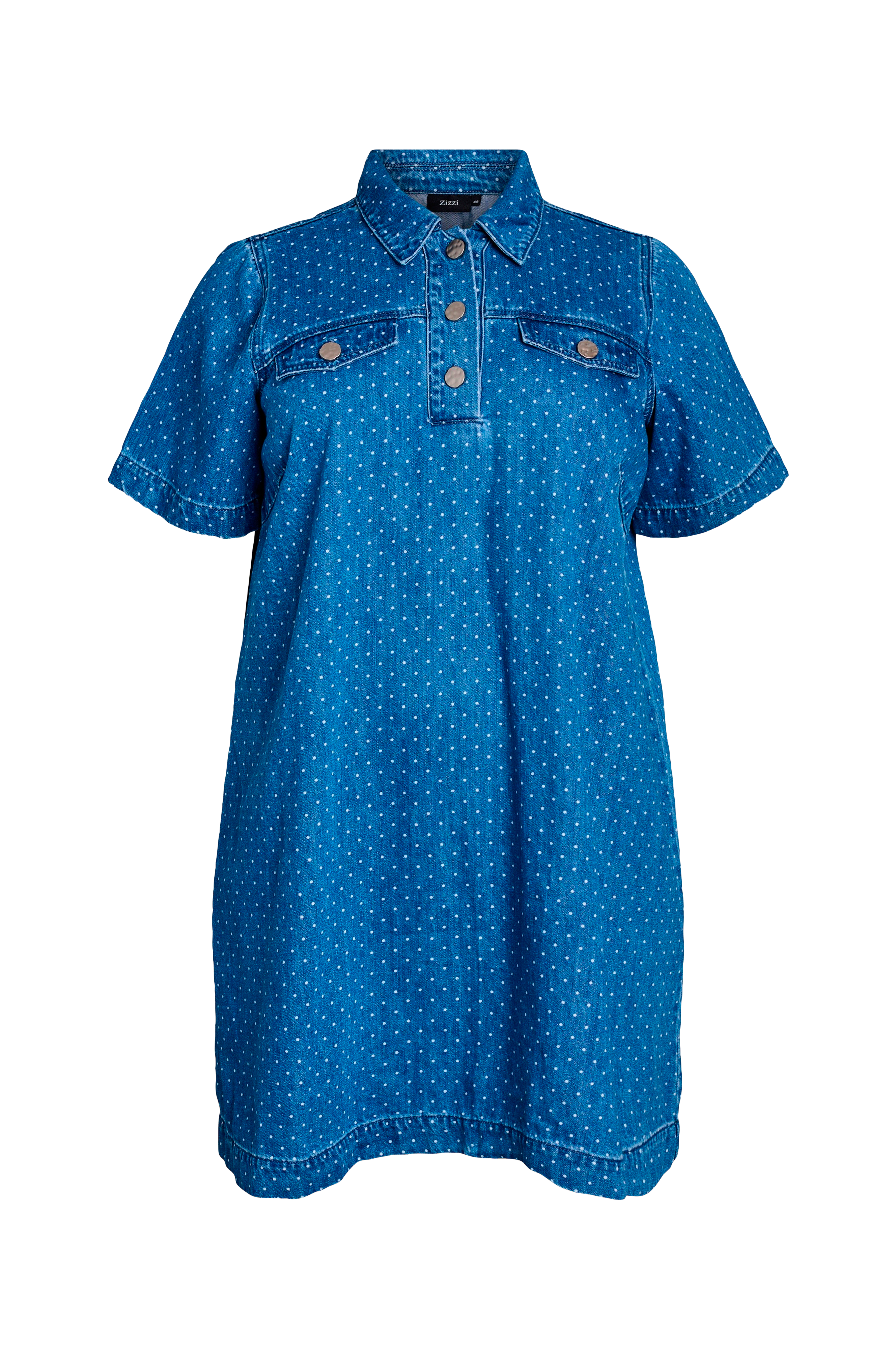 • Kortärmad jeansklänning med klassisk krage• Kort knappslå upptill fram• Fuskfickor på bröstet• Plusstorlekar• Längd: 96 cm i storlek S