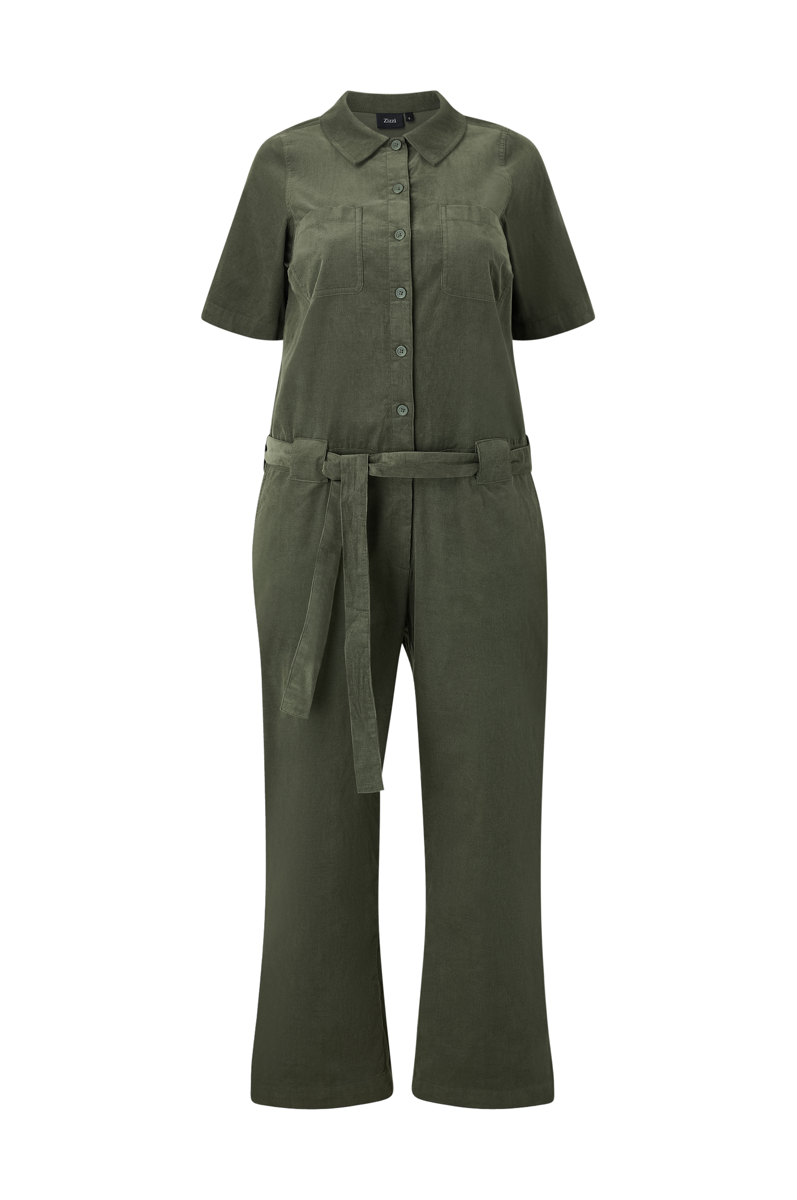 • Jumpsuit i manchester• Krage• Knappstängning• Knytband i midjan• Två bröstfickor• Två bakfickor• Sidfickor• Plusstorlekar• Längd: 163 cm i storlek S