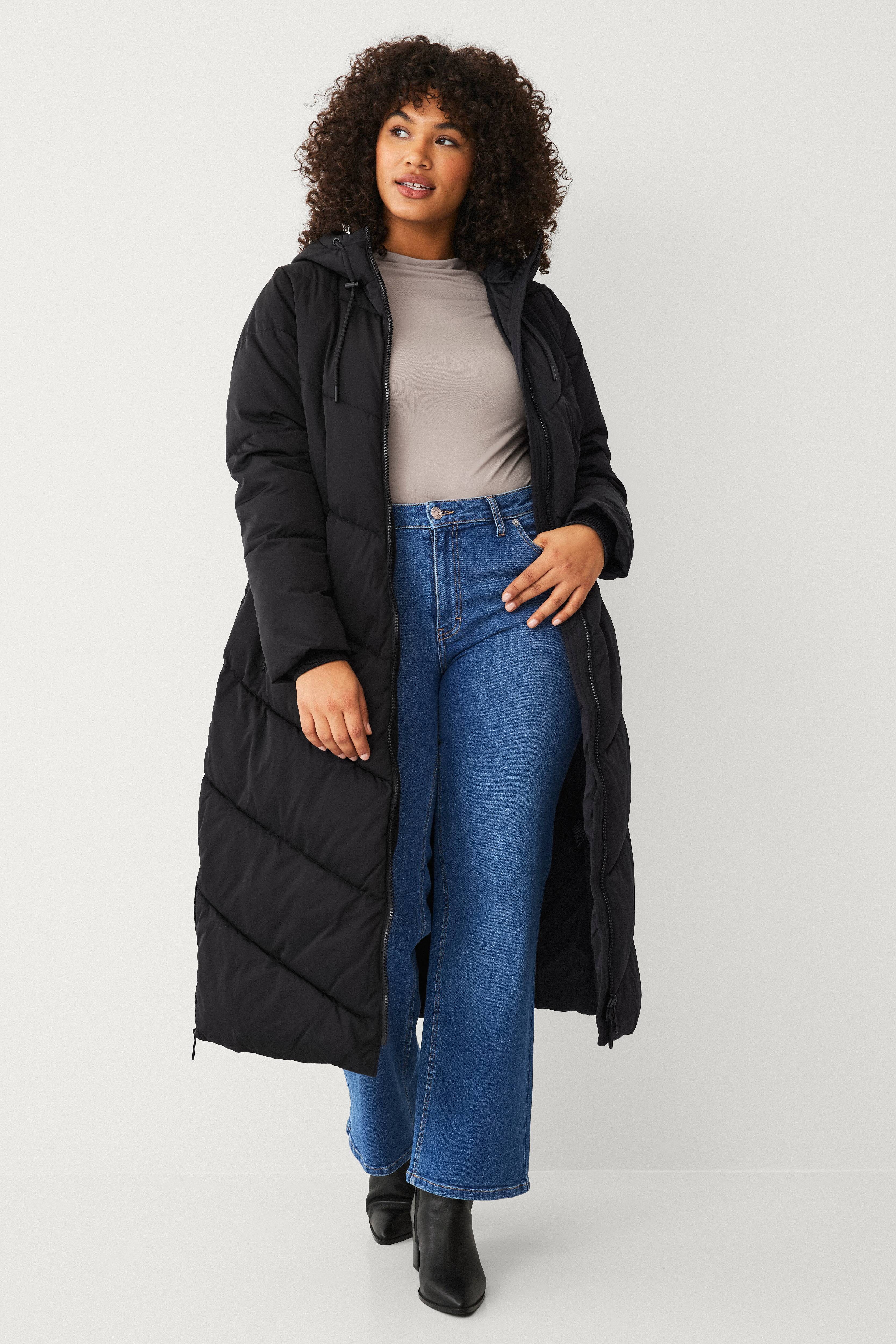 • Lång, quiltad, vadderad pufferkappa • Fast huva med dragsko • Tvåvägsdragkedja • Två fickor med dragkedja • En innerficka med dragkedja • Ribbmuddar i ärmsluten • Slitsar med dragkedjor nedtill i sidorna • Längd: 117 cm i storlek S