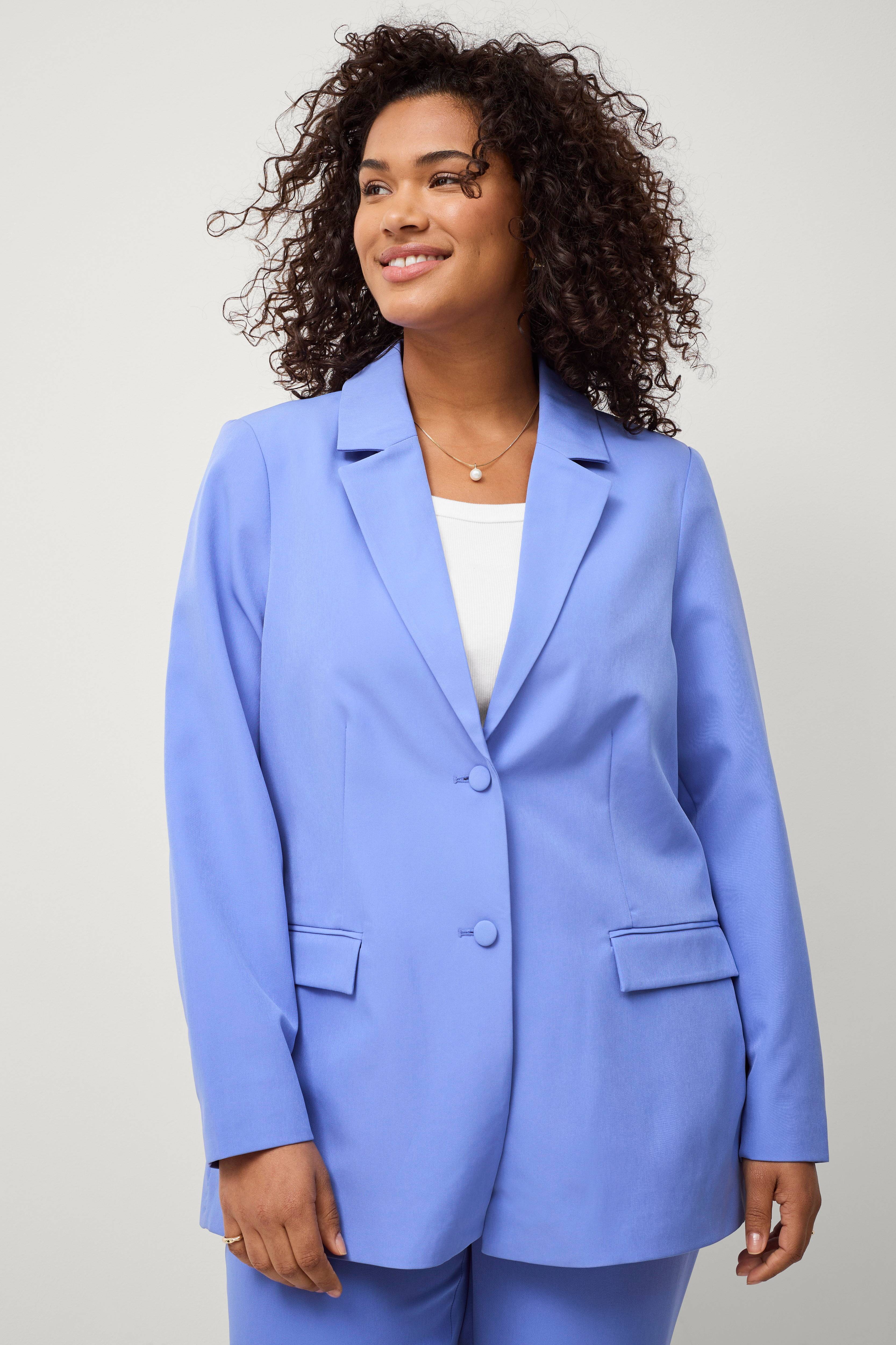 Jag köpte först den rosa kavajen. Sedan bestämde jag mig för att köpa både den blå och svarta kostymen. Allt passade mig perfekt. Lätta och behagliga plagg. Bra läng…