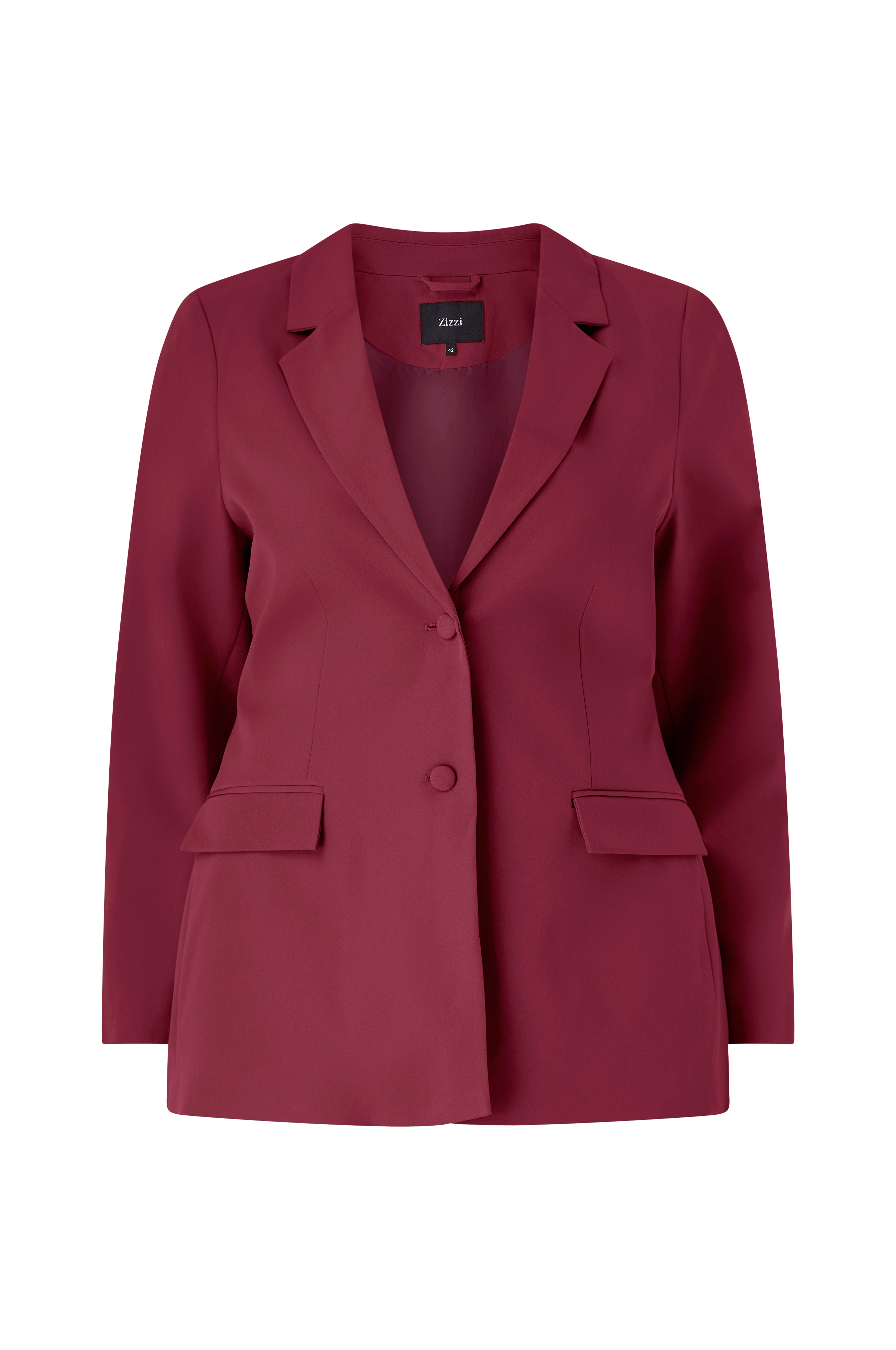 • Klassisk kavaj med två knappar • Normal passform • Lätt vadderade axlar • Två fickor med ficklock • Vävt, slätt foder • Plusstorlekar • Längd: 76 cm i storlek 42