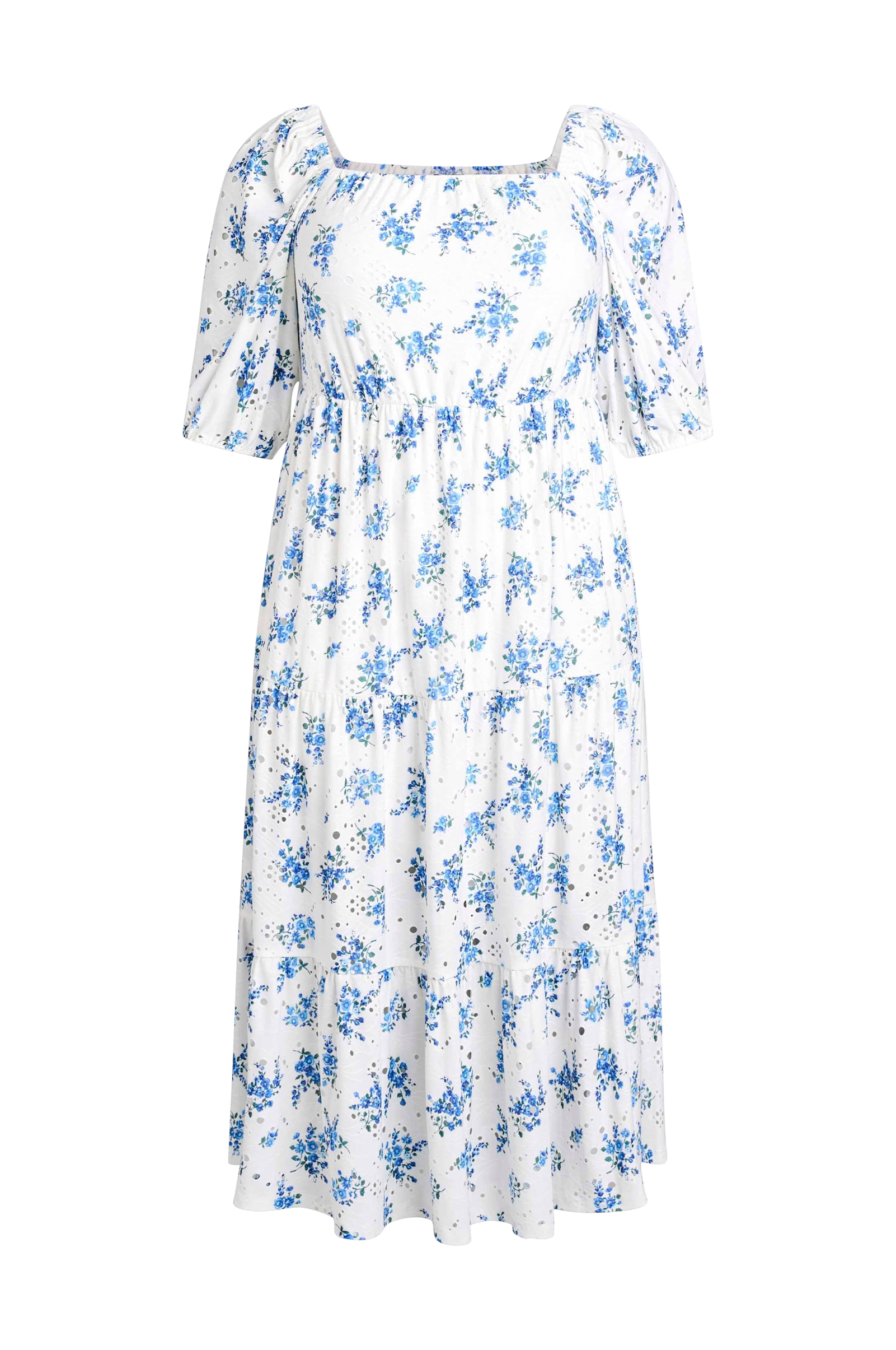 • Hålmönstrad klänning med volanger nedtill• Mjukt foder• Fyrkantig halsringning• Halvlånga ärmar• Resår vid halsringningen och i ärmsluten• Plusstorlekar• Längd: 125 cm i storlek S
