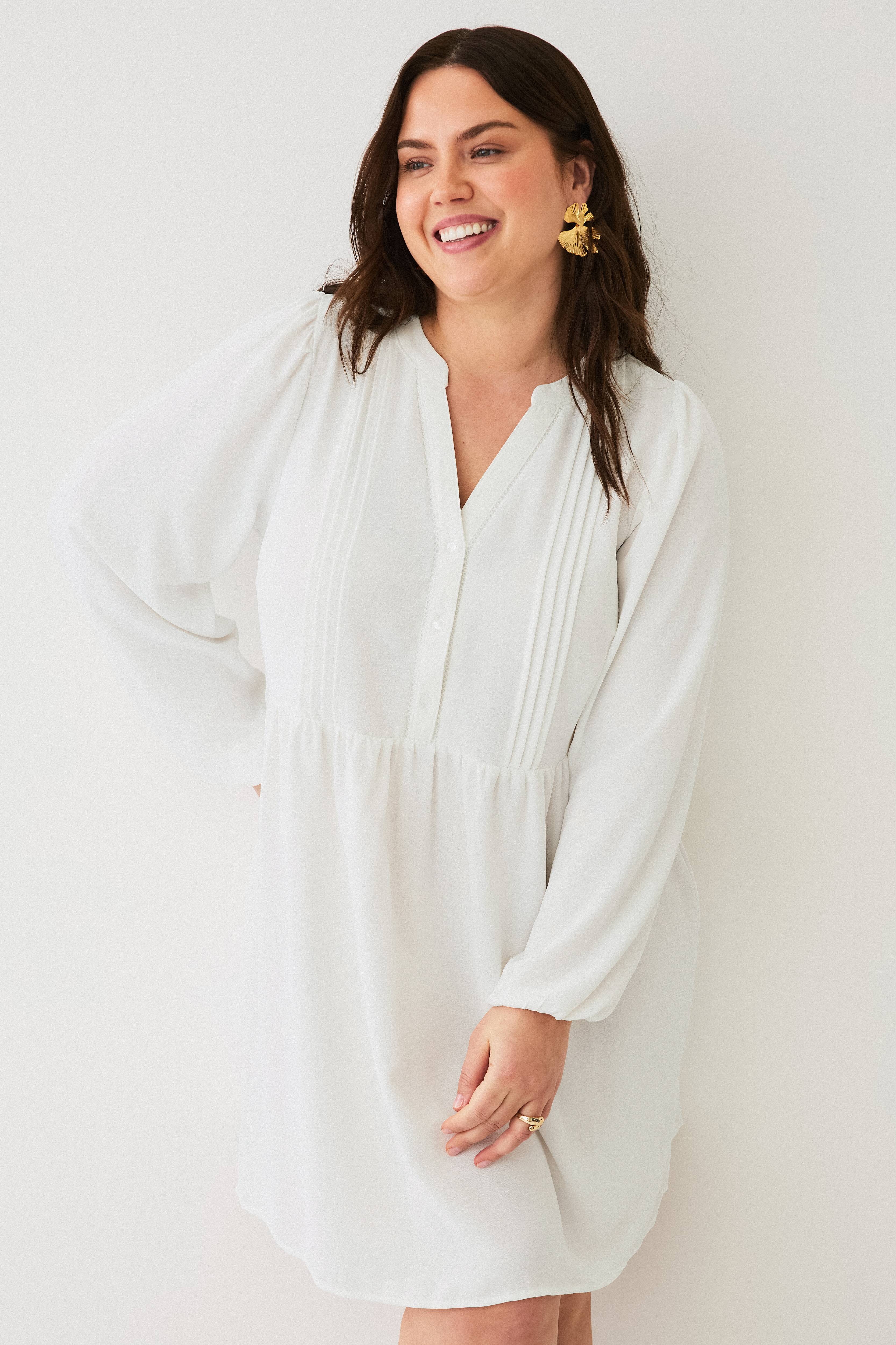 • Plusstorlekar• Utsvängd, ledig modell• Rund hals med sprund fram och kort knappslå• Stråveck på bröstet• Extra lång puffärm med resår i ärmsluten• Rynkad midja• Längd: 94 cm i storlek S
