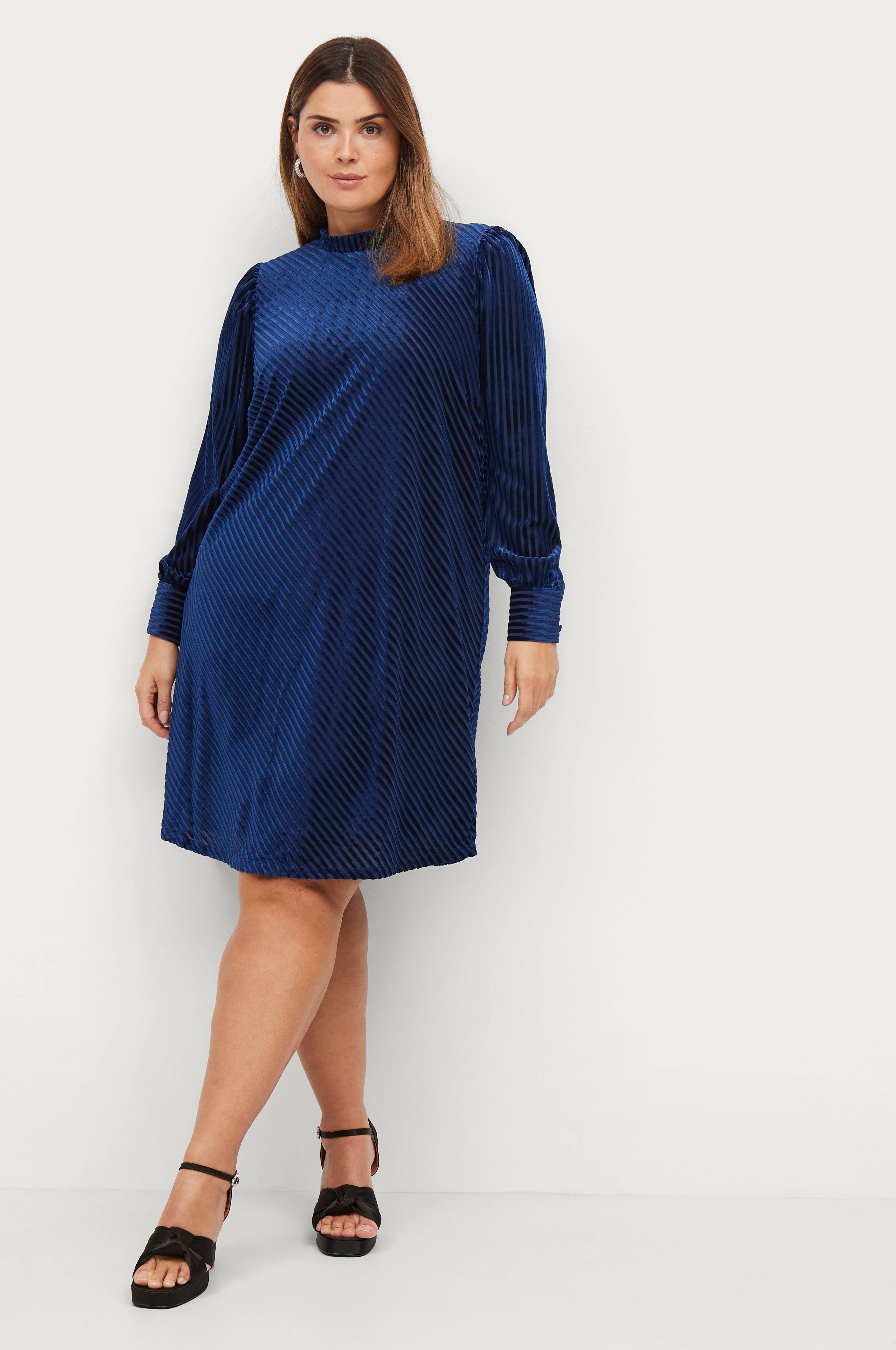 • Klänning i trikå med ränder i sammet• Hög halsringning• Dold dragkedja bak• Långa ärmar med manschett i ärmsluten• Trikåfoder• Längd: 99 cm i storlek S