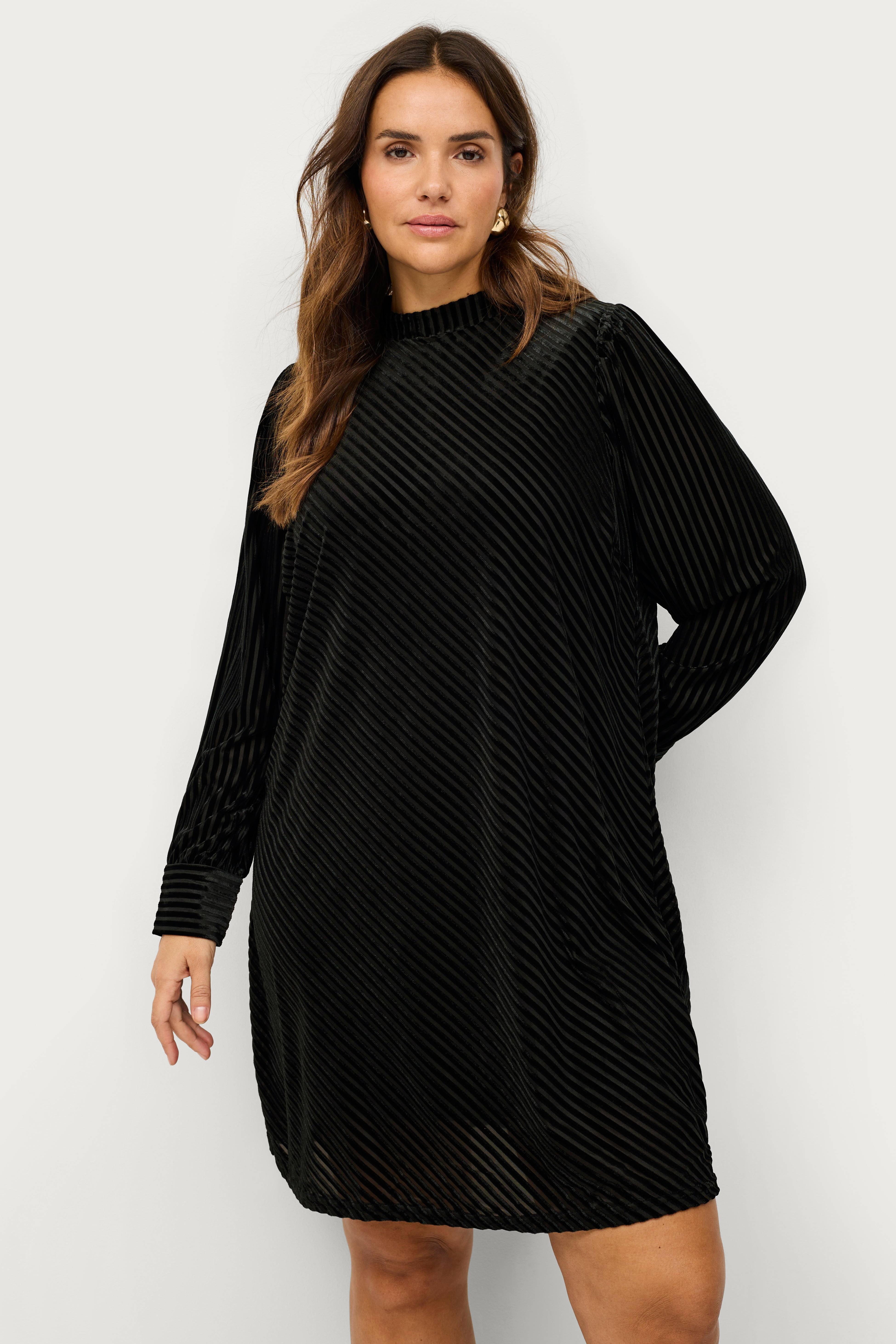 • Klänning i trikå med ränder i sammet• Hög halsringning• Dold dragkedja bak• Långa ärmar med manschett i ärmsluten• Trikåfoder• Längd: 99 cm i storlek S