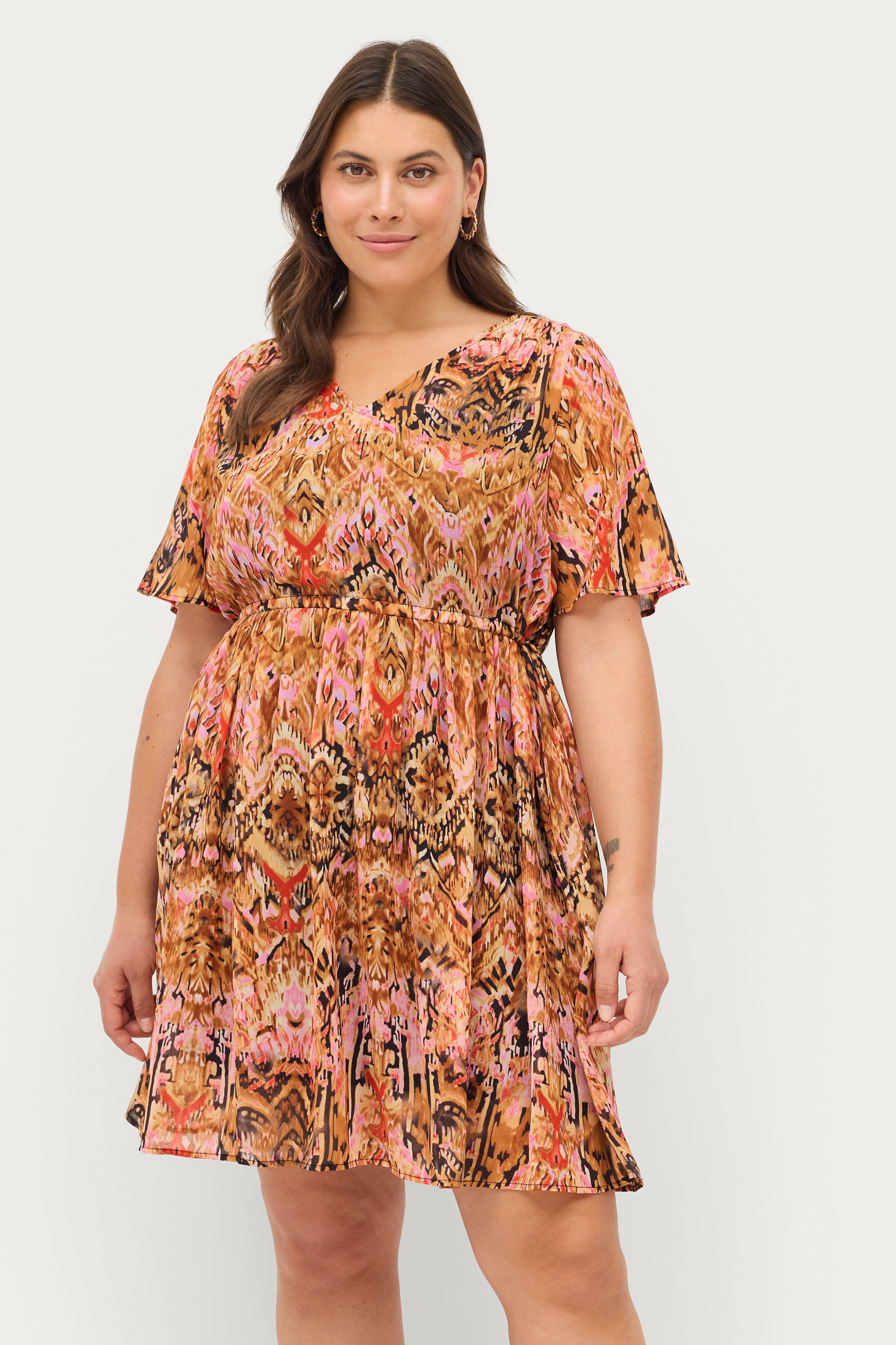 • Lätt kvalitet med mjukt foder• V-ringad hals• Kort ärm• Justerbar snörning i sidorna• Plusstorlekar• Längd: 99 cm i storlek S