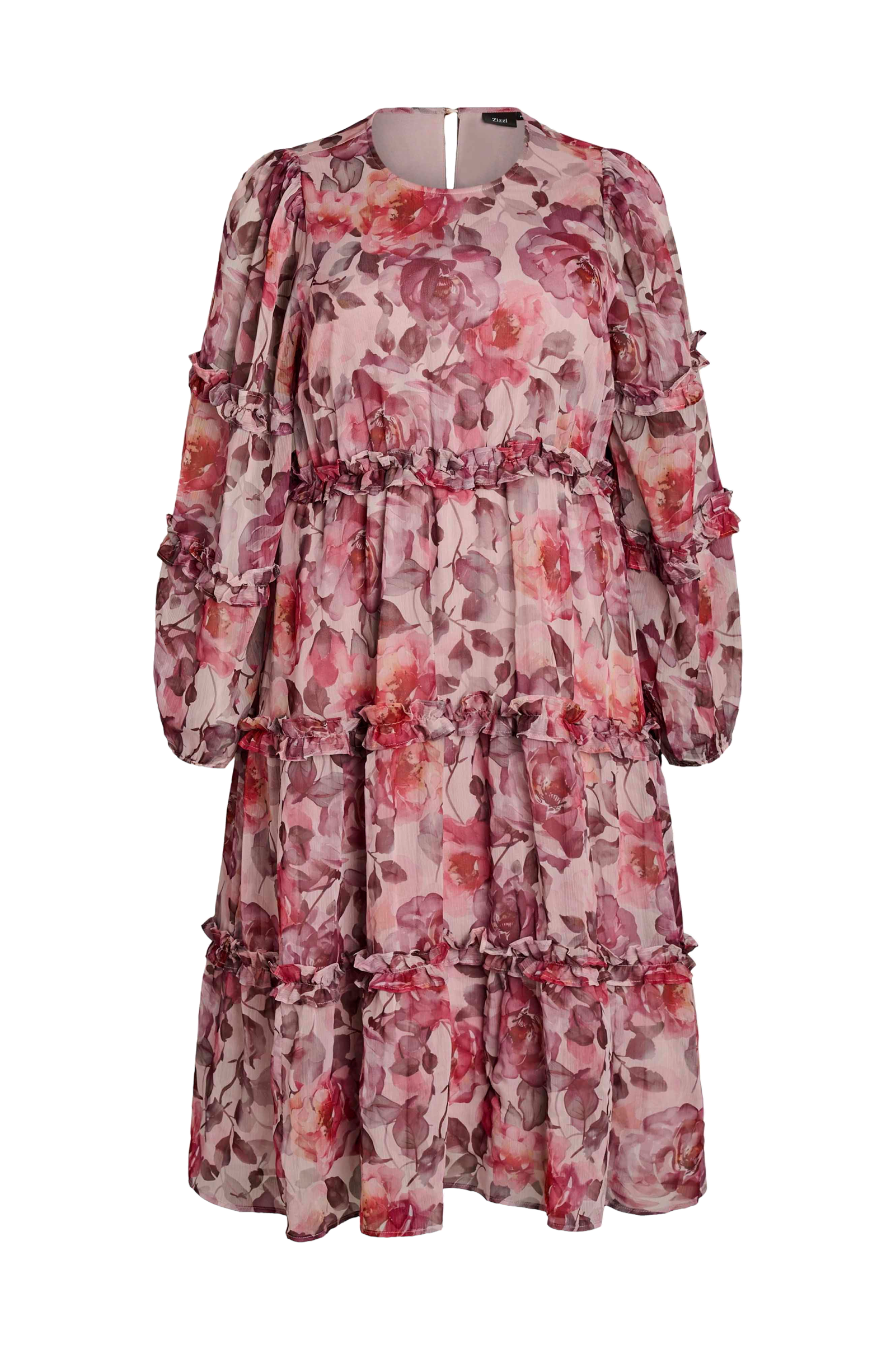 • Midiklänning i chiffong• Volangdetaljer• Långa, transparenta ärmar• Sprund med knapp i nacken• Trikåfoder• Längd: 126 cm i storlek S• Plusstorlekar