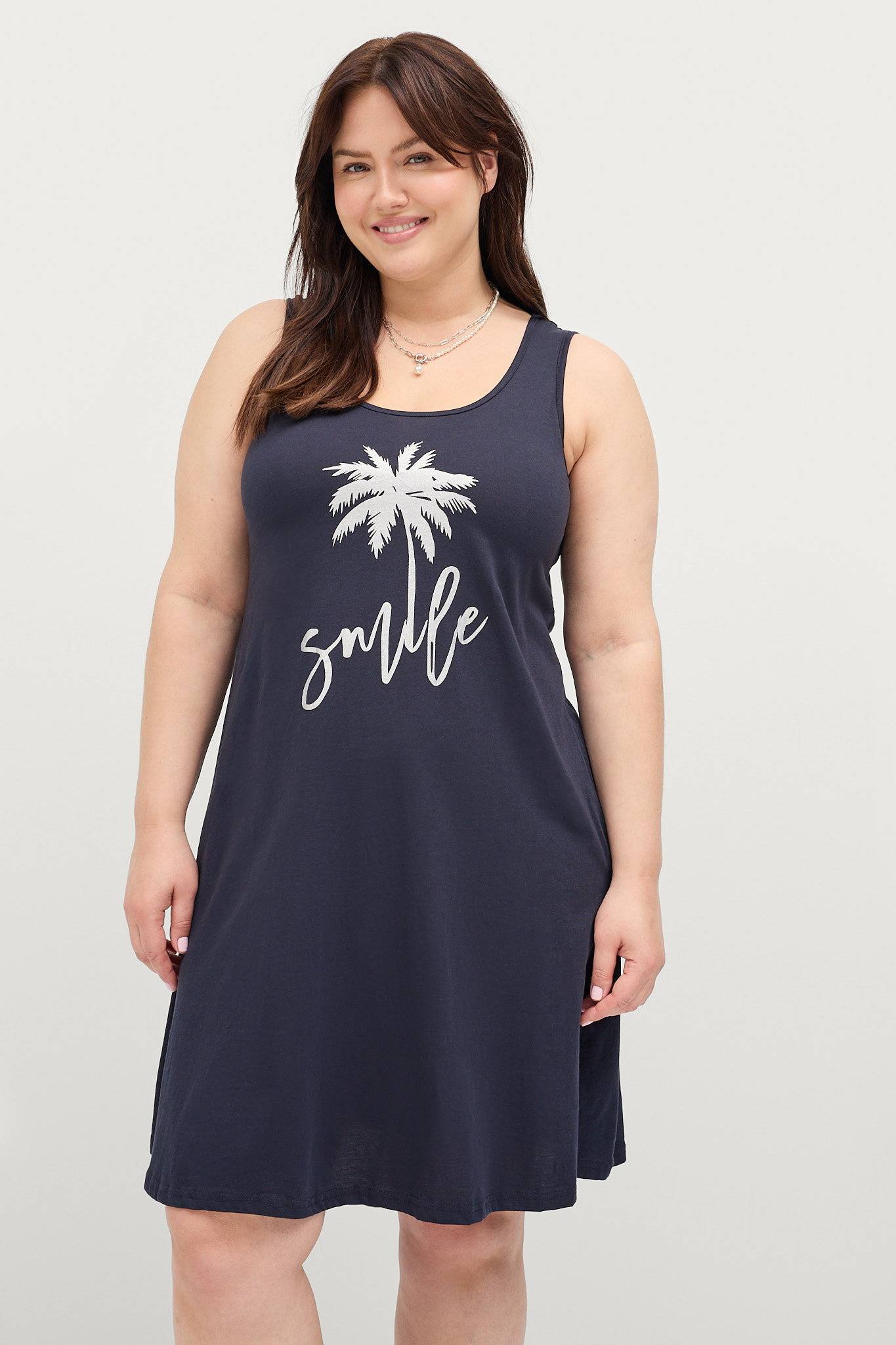 • Ärmlös klänning i bomullstrikå • A-linjeform • Plusstorlekar • Längd: 93 cm i storlek S • Produkten innehåller ekologisk bomull som är odlad utan kemiska bekämpningsmedel, konstgödsel och genmodifierade grödor (GMO). Det innebär en mer hälsosam arbetsmiljö för bönder och bättre jordmån.